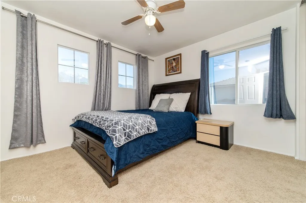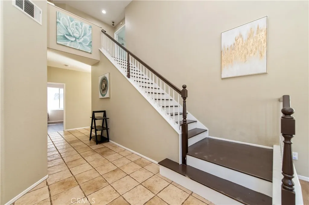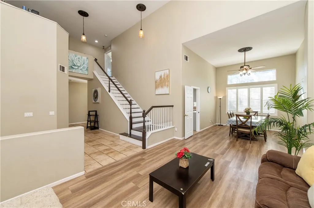 Welcome to this beautiful 5-bedroom, 3-bathroom home offering 2,714 sq ft of living space on an extensive 10,500 sq ft lot, ideally located in the heart of Rancho Cucamonga. Step inside to a bright and open living room and formal dining room featuring dramatic two-story high ceilings. Laminate flooring flows throughout the living room, family room, and staircase, creating a modern and cohesive feel. The home includes a separate laundry room and a highly desirable downstairs bedroom with a full bathroomperfect for guests or multi-generational living. Enjoy year-round comfort with two AC condenser units. Relax on the front balcony while taking in mountain views, or retreat to the primary suites oversized private balcony overlooking the backyard with swaying palm trees and fruit treesyour own peaceful oasis. The front yard features newly installed, attractive artificial grass for water-efficient, low-maintenance living. A spacious 3-car garage and wide driveway provide ample parking for multiple vehicles. Solar panels help reduce electricity costs. Conveniently located near schools, supermarkets, banks, restaurants, and parks, with easy access to both the 210 and 10 freeways. Situated in an excellent school district, this home truly offers space, comfort, and an unbeatable location.