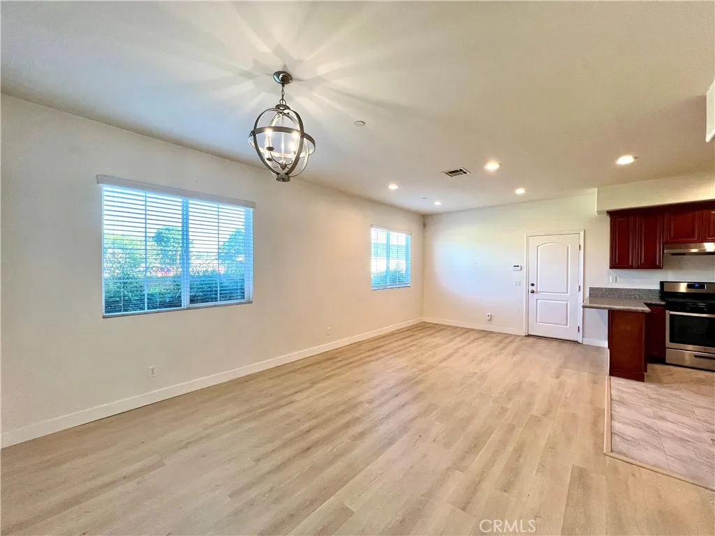 New condo featuring 4 bedrooms and 3.5 bathrooms, including two spacious primary suites. The home offers granite countertops, wood laminate flooring, plush carpet, window blinds, and a cozy fireplace. The large kitchen opens to a dining area, perfect for everyday living and entertaining. Additional highlights include an upstairs laundry room and a convenient half bath on the main level. Located in a gated community with a playground and a two-car attached garage. Ideally situated near freeways, shopping, dining, and within walking distance to schools.