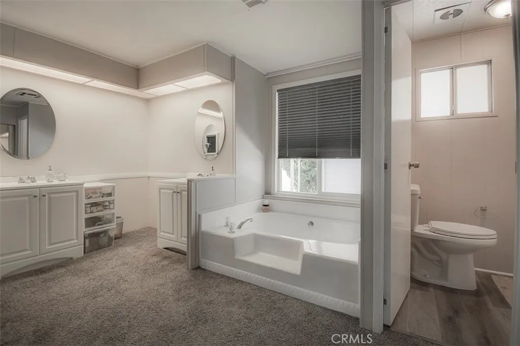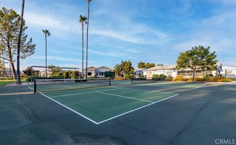 This adorable home is in the perfect location with amazing VIEWS of golf course, lake, fountains and the famous bridge. Features include nice flooring, painting, windows throughout. From the large living, dining area, kitchen and family room you have incredible VIEWS! Open kitchen includes refrigerator, upgraded counters and lots of cabinets. Separate cozy family room with build-in entertainment. Inside laundry includes washer and dryer. Spacious Primary bedroom which opens to oval tub, two individual vanity sinks and separate enclosed bathroom with shower. Nice size secondary guest bedroom. Guest bathroom with tub, shower and extra cabinet space. Our 55+ Community offers you Resort Style Living at it's finest. The Lakes at Hemet West has a guarded gate and you will enjoy Golf, Fishing, Billiards, Shuffleboard, Horse Shoes, swimming pool, clubhouse, RV. storage, beautiful walking pathways, scenic views -and so much more. Welcome home to this wonderful community.