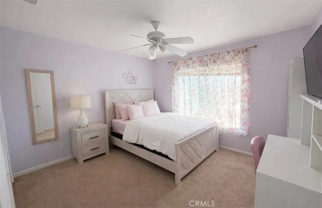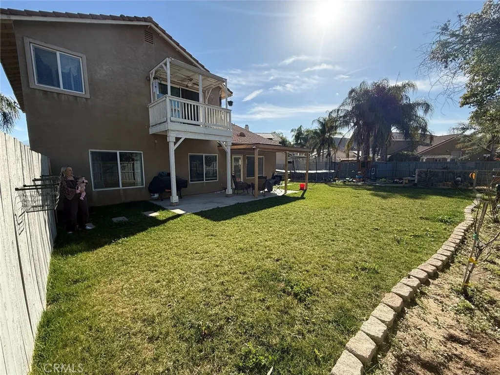 Beautiful home located in the highly desirable Stoney Mountain tract! This spacious four-bedroom, three-bath residence offers 2,222 square feet of living space on a generous 8,276 sq. ft. lot. The thoughtfully designed floor plan includes one bedroom and one full bathroom conveniently located downstairsperfect for guests or multi-generational living. Downstairs features engineered wood-look laminate flooring, while all bedrooms are comfortably carpeted. The kitchen is a standout with a large island, custom concrete countertops, and an abundance of cabinetry, making it ideal for both everyday living and entertaining. The backyard is designed for enjoyment and functionality, featuring a covered patio, grassy area, fenced RV parking, and a dedicated dog run. Situated on a quiet cul-de-sac in a peaceful Hemet neighborhood near Warren Road and Esplanade, this home offers both privacy and convenience. The exterior has been freshly painted, adding to its curb appeal and move-in-ready charm. Some pictures have been digitally enhanced.
