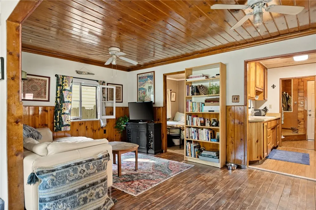 Welcome to the Crestline community! Close to Lake Gregory, which offers activities such as fishing, summer water fun, and its own beach! Nestled on a quiet street in Crestline, close enough to shopping, yet surrounded by privacy, discover your own slice of respite in the mountains. Built in 1928, the current owner has put much love into this sweet home, including revamping the bathroom, installing a new foundation in the build-up, and adding custom closets, all while keeping the original feel of a mountain cottage. The open feeling of 540 sq ft of living space, the extension of a home office, or another possible guest room provides an additional 128 sq ft, not included in the original square footage: two EASILY accessible flat parking spaces and minimal steps to the house. The side and backyard provide plenty of room for outdoor gatherings, with the area safely enclosed for dogs to run. A NEW retaining wall offers peace of mind during the rainy and snow season, as does knowing that Dart Canyon is plowed regularly! Attractively priced at $249,500, this sweet home offers a cozy, open living environment to enjoy for years to come!