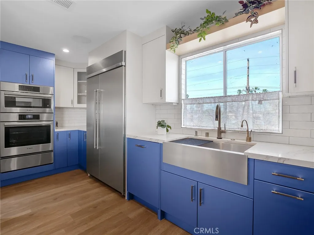 Enjoy breathtaking marina views from this exceptional, one-story condothe largest unit in the complexlocated in a premier top-corner position with only one shared wall and no neighbors above.---This rare layout offers privacy, quiet, and single-level living seldom found in coastal condos. The home was extensively reimagined and redesigned by the current owner with a custom floorplan unique to the building.---Soundproofing was professionally engineered with the expert engagement of Veneklasen Sound Engineers, including underlayment beneath the entire flooring, real cork wood floors for added acoustic insulation, and double drywall on the sole shared wall and in the primary bedroom.---Every bedroom features solid-core doors with invisible SOSS hinges, enhancing both sound control and a clean, modern aesthetic.---The chefs kitchen, newly added wet bar, and all bathrooms feature custom European cabinetry, quartz countertops, and full-height tile backsplashes and/or shower enclosures.---The kitchen is further appointed with a 36 Wolf range and hood, brand-new 48 built-in KitchenAid refrigerator/freezer, Bosch speed oven/microwave, combination oven, warming drawer, and integrated panel dishwasher, plus Delta plumbing fixtures throughout.---A walk-in pantry and separate laundry room add everyday convenience.---The primary suite includes a modernized bath with a separate toilet room, a wet-room-style shower with a built-in air-jet tub, and a luxurious oversized walk-in closet with custom built-ins.---A newly added bonus room, concealed behind a hidden bookcase door, offers flexible