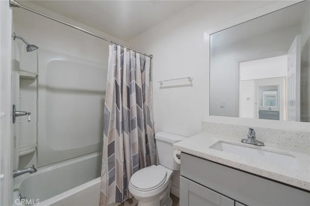 Dont miss the opportunity to own this amazing 3-bedroom, 2-bathroom home with an assigned covered parking space and 2 additional parking passes in a gated community. This newly remodel home comes with all recessed lights, central heat and air,quatz countertops, brand new laminate flooring, stove and microwave oven. Nice open floor plan with spit bedroom concept provides maximum comfort and privacy. Large living room. Spacious master bedroom with 2 over-sized floor to ceiling mirrored closet, modernized ensuite bathroom with generous vanity. Good size 2 bedrooms by the kitchen/family room share a full-size bathroom. The bright kitchen leads to a large private balcony. Ampler natural light in every room gives a positive feeling throughout. Community includes 2 swimming pools and spas; laundry facilities conveniently located right around the corner. Bring your suitcases in and enjoy your new home. Furnishing photos are virtual staged.