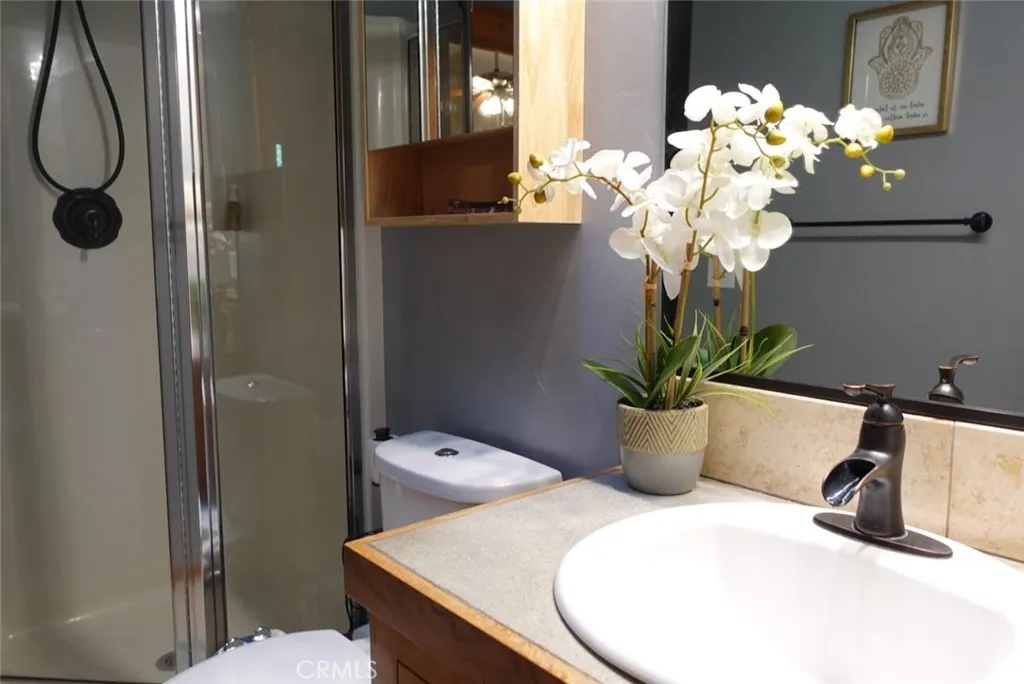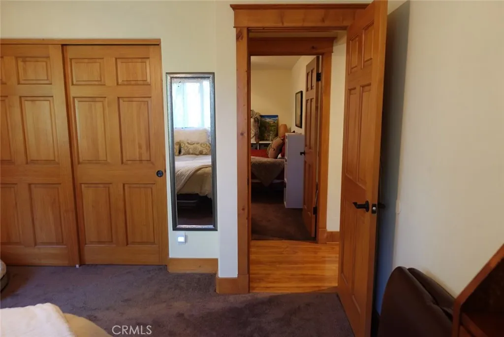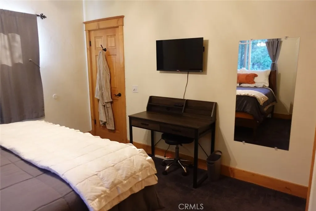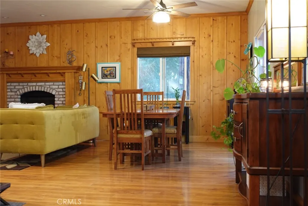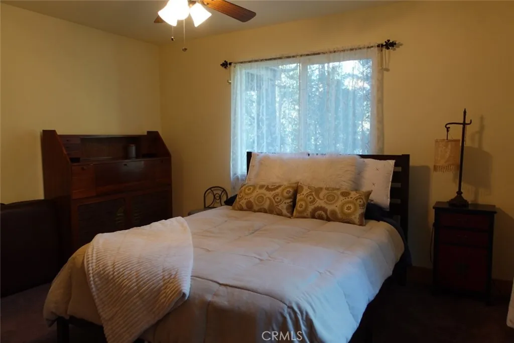 Welcome to this beautiful Crestline home offering the perfect blend of modern comfort and mountain charm. Built in 2008 and located just minutes from Lake Gregory, this 2,028 sqft. residence features a spacious and functional floor plan ideal for everyday living and entertaining. The main level offers a bright living room with fireplace, crown molding, and wood accent walls, a large kitchen with ample counter space, and a bedroom connected to a Jack-and-Jill bathroom with additional access from the dining area. Step outside to an expansive patio and a landscaped backyard with amazing views, creating a peaceful outdoor retreat. The lower level features a versatile secondary living area that can be utilized as a gym, game room, or office, along with three additional bedrooms, a Jack-and-Jill bathroom, and a convenient laundry closet. Additional highlights include a gated yard, private parking, and ample street parking. This turn-key property offers comfort, space, and the tranquility of mountain living.