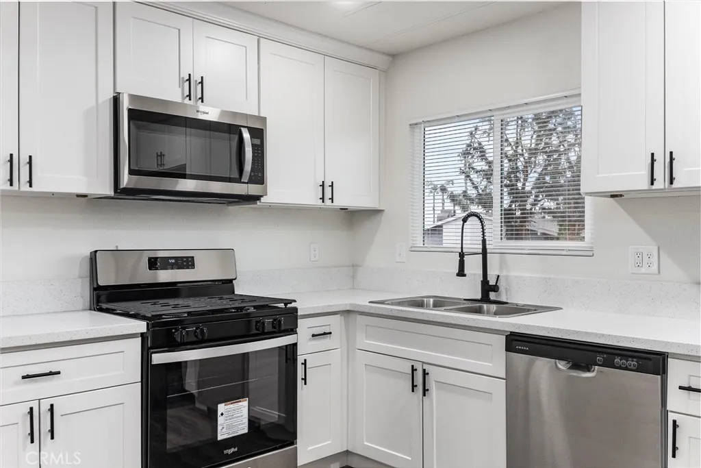 Discover comfort and style in this beautifully renovated 1,056 sq ft, 2-bedroom, 1-bathroom manufactured home, ideally situated on a desirable corner lot in the peaceful community of Riverdale Village. Thoughtfully updated and move-in ready, this home features a refreshed bathroom, stainless steel appliances, stunning quartz countertops, modern cabinetry with elegant black accents and an efficient HVAC system. Fresh interior paint, new carpet, and wood-style flooring add warmth and sophistication throughout, all while being on a generous sized lot. Riverdale Village offers an exceptional lifestyle with amenities including a shimmering pool, fitness center, game room, soccer and basketball courts, and a clubhouse complete with a full kitchen and recreation lounge. A playground and dog station ensure enjoyment for all ages. This is a rare opportunity to own a stylish, fresh turn-key home in a vibrant and welcoming neighborhood.