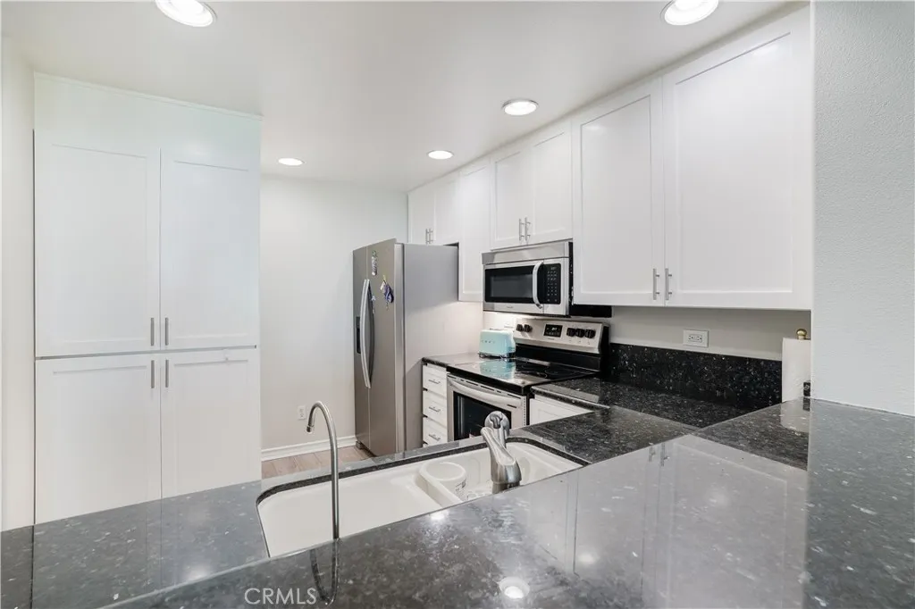 BACK ON MARKET!! Resort style living at The Metropolitan. Completely remodeled 2 bedroom, 2 bathroom PLUS den, office or third bedroom. This is most popular model in the complex. Beautiful hardwood laminate flooring. Shaker cabinets throughout. Kitchen includes all stainless appliances, custom cabinets, granite counters and glass tile backsplash. Custom made ceramic double wide sink and brushed nickel faucets. New refrigerator, oven/stove and dishwasher. All new recessed LED lighting. 9 foot high ceilings throughout. Primary bedroom has enormous walk in closet. Bathroom has custom dual sink vanity with stone counter tops, new designer sinks and brushed nickel faucets. Beautiful stone cased soaking tub and walk in shower fished in beautiful stone and pebble flooring with frameless glass enclosure. Second guest bedroom has walk in closet. Bathroom has custom sink vanity with quartz counter tops, new designer sinks and brushed nickel faucets. Large soaking tub with matching brushed nickel roman tub faucet and finished in beautiful stone casing and back wall. Large deck off living room and primary bedroom. The complex includes a guard, security gated, gorgeous sparkling pool, extra-large spa, gym and clubhouse