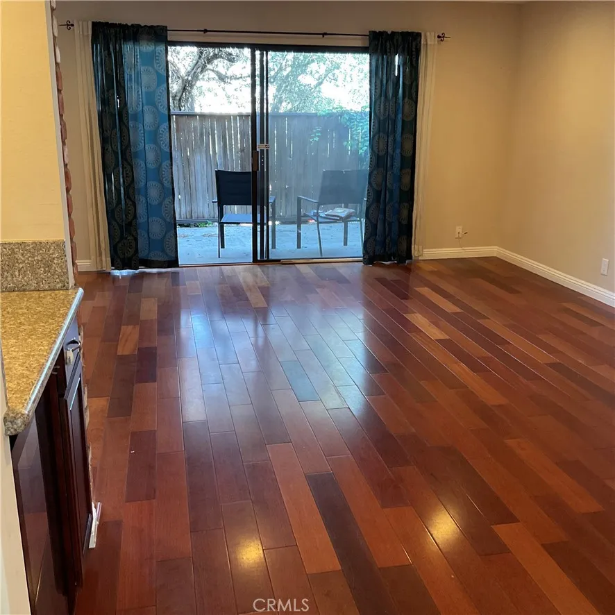 Designer perfect end unit townhome. Direct access 2 car garage features an attached bonus room (app. 300 sq ft.), not included in square footage, which is a completely finished entertainment room with cabinetry, TV hookups and furnishings. Brazilian cherry hardwood floors, wine frig, and private patio make for great entertaining in the large living room, wired for surround sound. New carpet just installed with upgraded padding. Entire interior has just been professionally painted and cleaned. Beautiful kitchen with granite countertops and stainless steel appliances. Refrigerator and Samsung washer and dryer included, without warranty. Spacious Primary Bedroom features a huge walk-in closet with built-ins, plus an additional large separate closet with built-ins. Step inside and prepare to be impressed!