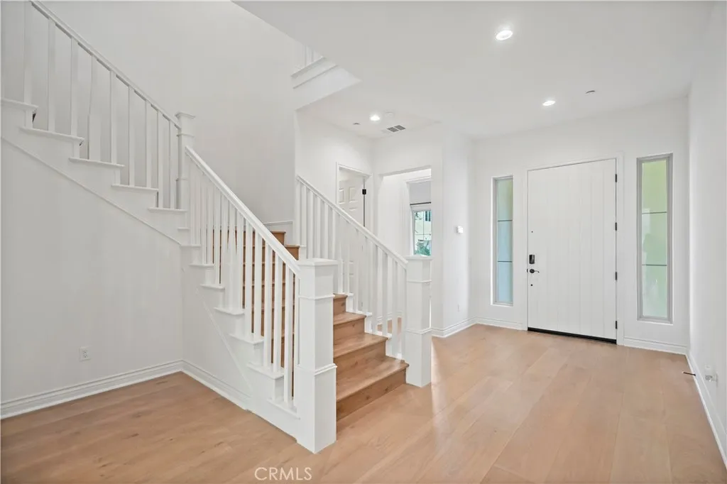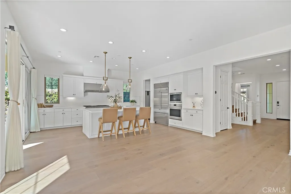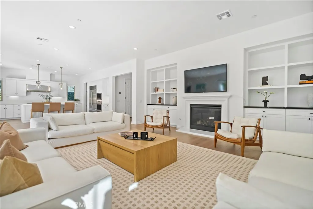 Located in the prestigious 24-hour guard-gated Orchard Hills the Groves, this prime corner-lot home offers 4,075 sqft with 4 bedrooms and 4.5 bathrooms. The second-floor loft offers flexibility and can be upgraded to a home office or fifth bedroom with closet. The home features luxury engineered hardwood flooring throughout, a spacious living room with fireplace, and large sliding doors for seamless indoor-outdoor living. The chefs kitchen is equipped with WOLF and SUB-ZERO appliances, plus a separate prep kitchen with extra appliances and oversized pantry. The luxurious primary suite is nearly double the size of secondary bedrooms and offers peaceful trail views. All the bedrooms have en-suite bathrooms, including one bedroom on the first floor. Enjoy a decent-sized backyard finished with Italian porcelain tile and a California Room large enough for a 10-seat dining table, perfect for Southern California outdoor living. Additional highlights include paid-off solar, EcoWater softener, Tesla EV charger, and PHYN smart water monitoring system. Community amenities include a clubhouse, two pools, spa, tennis and basketball courts, playgrounds, and scenic hiking trails.