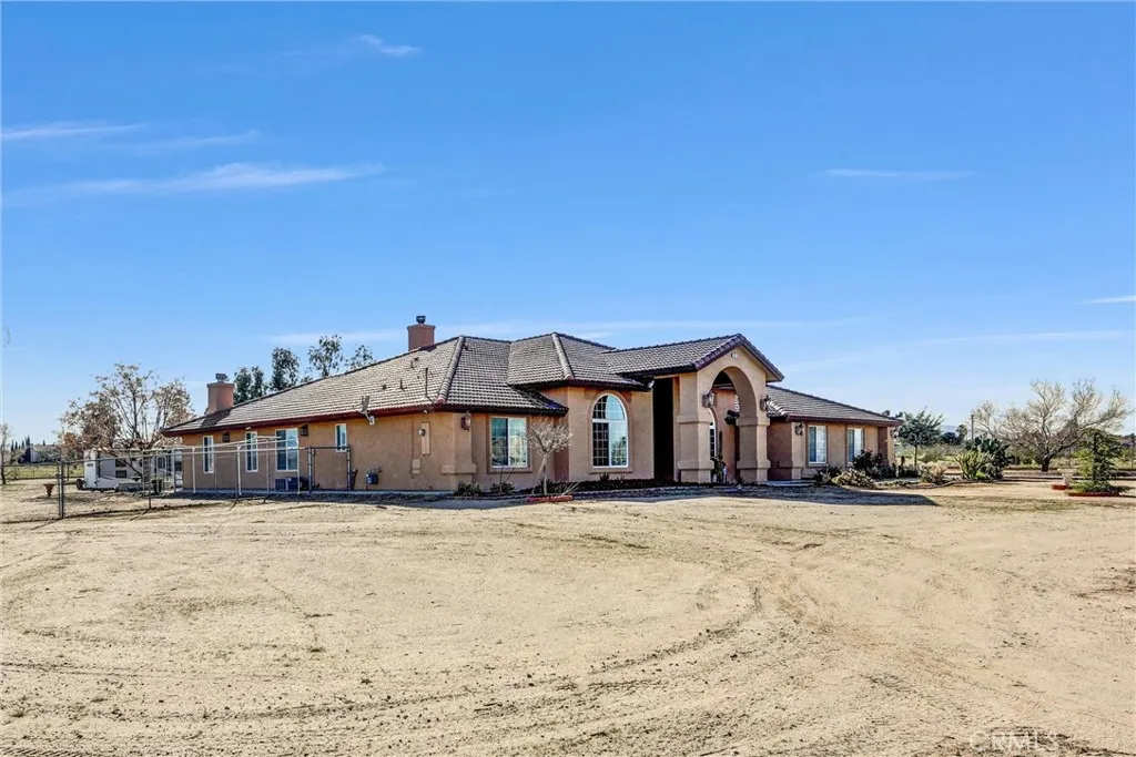 Welcome to this spacious and beautifully maintained home located in Hesperia. Offering 4 bedrooms, plus one bonus room, 2 full bathrooms, and an additional half bath, this 3,125 sq ft residence sits on an expansive 1.77 Acre lot, (77,101 sq ft) providing endless possibilities. Step inside to discover high ceilings and an open, airy layout that creates an inviting atmosphere throughout. The spacious primary bedroom offers a comfortable retreat, featuring a cozy fireplace, generous square footage, and an en-suite bathroom with a sunken soaking tub, dual vanity, and a large walk-in closet for ample storage. The large kitchen is a standout feature, complete with a beautiful center island, ample cabinetry, and generous counter spaceperfect for hosting and everyday living. The bonus room adds flexibility for a home office, game room, gym, or guest space. The home is well cared for with durable laminate and tile flooring, a home security system, and thoughtful upgrades throughout. Outside, the expansive yard is designed for entertainment, featuring built-in outdoor lighting providing a beautiful outdoor ambiance with auto turned on at dusk. Wide-open space, and plenty of room for RVs, boats, semi-truck with tractor trailer parking, and all your recreational toys, secured by two private electric gates. Conveniently located near major shopping, dining, schools, and offers easy access to the I-15 freeway. This property combines space, comfort, and an unbeatable locationready to welcome you home.