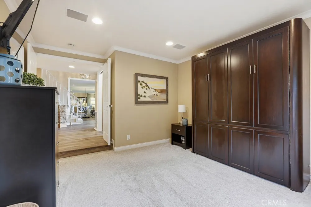 YOUR PRIVATE SANCTUARY AWAITS! Tucked into a tranquil cul-de-sac, this exceptional residence unveils a resort-inspired outdoor oasis unlike anything else on the market. Designed for both grand entertaining and intimate relaxation, the expansive backyard centers around a breathtaking 22,000-gallon custom pool and spa, framed by lush landscaping and serene hillside views. The pools deep-blue PebbleTec finish, infinity-edge Jacuzzi, sheer-descent waterfalls, and oversized Baja shelf with bubbler and umbrella sleeve create a true luxury retreat. A fully appointed outdoor kitchenfeaturing a 3-burner Delta grill with a sear zone and rotisserie, an additional gas burner, a refrigerator, a kegerator, and elegant travertine counterssits beneath a sophisticated Alumawood patio cover. A gas firepit, outdoor shower, and private putting green complete this extraordinary space. Inside, the home continues to impress with a gourmet kitchen showcasing quartz countertops, custom European cabinetry, and premium stainless-steel appliances. The spacious primary suite overlooks the pool and rolling hills, while the fully reimagined primary bath offers custom cabinetry, an exquisite flagstone shower with three shower heads, radiant onyx counters, and matching flagstone flooring. The secondary upstairs bath features granite counters, a quartz shower, and radiant floor heating. Four generous secondary bedrooms, including one conveniently located downstairs, provide comfort and versatility, with the guest room enhanced by a built-in Murphy bed. Additional upgrades include new LVP flooring downstairs