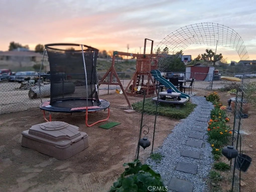 On a hill, a very beautiful view home with plenty of space for all your toys! Close to Victor Valley College and shopping. Quiet street, peaceful neighborhood, covered walkway, 2 covered carports. Two rooms have been converted into one huge primary bedroom, offering extra comfort and flexibility. Enjoy a relaxing side area perfect for family gatherings and outdoor enjoyment. Theres even a dog run for your furry friends. The property features a smooth, gentle slope and breathtaking views of the desert and surrounding mountains. Two storage sheds provide ample space for tools, equipment, and extra belongings. Seller may consider leaving certain items for a price if buyers would like to include them in their offer.