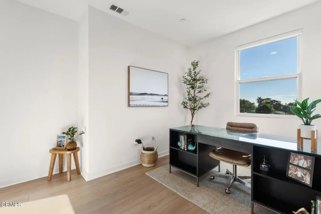 Step through the front door and activate beach mode.This gorgeous townhome lives like a single-family home, blending ocean views, airy space, and low-maintenance ease--just a short stroll from the sand. Morning walks to the beach, salty air drifting through open windows, and sunsets from home... this is coastal living done right.Bright, open, and designed for easy living, the home features high ceilings, walls of windows, and ocean views from every level. The main living floor flows seamlessly to a spacious patio and yard with a relaxed, coastal feel--perfect for barefoot dinners, weekend gatherings, or winding down after a day at the beach under the glow of landscape lighting.Designed for both everyday comfort and effortless entertaining, the kitchen offers a walk-in pantry, center island, generous storage and connection to living and dining space. A large two-car garage provides plenty of room for beach toys, surfboards, and e-bikes--everything you need for the Ventura lifestyle.The primary suite is a true retreat, complete with balcony, walk-in closet, and a spa-inspired en-suite bath featuring custom stone counters and a large glass-enclosed shower. Two additional spacious guest bedrooms are complemented by a loft-style office filled with natural light and ocean views--ideal for working from home.The third-floor bonus room with half bath is a standout space--currently used as a family and entertainment room, but easily adaptable as an additional bedroom, media room, or bar lounge. It opens to a private balcony with sweeping ocean and island views, creating the ultimate