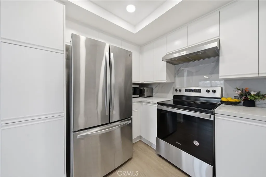 Welcome to this beautifully upgraded, END-UNIT penthouse with nobody above you and detached on 3 sides. Located in the highly desirable Hillcrest Village community, where the tranquility of your surroundings meets the convenience of being centrally located in one of Southern Californias top cities. Entering the home, you are greeted by a bright and open floor plan accentuated by high ceilings and light catching windows throughout, where the spacious living room with a cozy fireplace seamlessly flows to the dining area and opens to the kitchen. The entire residence recently underwent a full make-over, starting with light-colored, wide plank, luxury laminate flooring that extends into the well-appointed and modern-feeling kitchen with quartz countertops, new stainless-steel appliances, an undermount sink, and plenty of cabinet and counter space. The large living room offers ample space for relaxing and enjoying intimate family gatherings in a dining area accented by a luxe modern light fixture. Off the living room is an office that can be converted into a second bedroom with sliding doors to the charming front bistro-style balcony perfect for morning coffee or sunset wine. Located on the other side of the residence, the spacious primary suite offers a peaceful retreat and sits next to the full hallway bathroom with a white shaker vanity with quartz countertops and a luxury step-in shower with a barn door style glass enclosure and high-end stone finishes. You will appreciate the convenience of an in-home laundry space with a new washer and gas dryer and plenty of storage space
