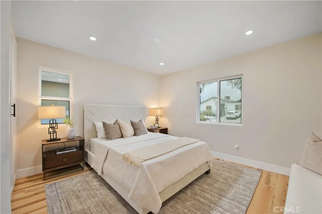 Discover a rare investment and lifestyle opportunity at 17905 & 17907 Bullock St in the highly sought after neighborhood of Encino Park. This thoughtfully upgraded dual-residence property offers exceptional flexibilityperfect for extended families, generating rental income, or living in one home while leasing the other. The main home has been completely remodeled and spans 1,753 square feet with 4 bedrooms and 3 bathrooms. Bright, open, and contemporary, the living room features soaring ceilings, luxury vinyl plank flooring, and a seamless open-concept design ideal for everyday living and entertaining. The chefs kitchen is a standout, appointed with premium Thor stainless steel appliances, sleek quartz countertops with a waterfall-edge peninsula, a full-height quartz backsplash, walk-in pantry, and convenient pot filler. The living area centers around a striking quartz-framed electric fireplace, creating a warm yet modern focal point. The spacious primary suite serves as a private retreat, complete with a walk-in closet and spa-inspired bath showcasing a soaking tub and designer-tiled shower. Additional highlights include a junior suite, dedicated laundry room, tankless water heater, white stone accents, and a 1-car garage equipped with an EV charger. Built in 2025, the newly constructed ADU at 17907 Bullock St offers 752 square feet with 2 bedrooms and 2 bathrooms. Designed for privacy and efficiency, it features a separate entrance from Oxnard Street, carport parking, laundry hookups, fully electric systems, owned solar panels, and its own tankless water heatermaking it a
