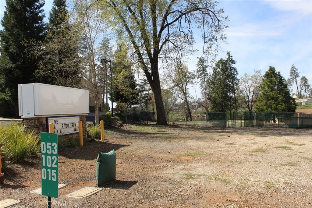 Here are two lots totaling 1.03 acre, on one of the highest traffic count streets in Paradise. Both lots are zoned CC, Community Commercial and being sold together. The larger lot is .63 of an acre, the smaller lot is apn 053-102-015 and .4 acre. The larger lot, held a family home, garage, swimming pool, and a Restaurant on the front of the property with parking and signage. The over sized garage and pool still remains in place. The garage is in good condition and painted. It is not drywalled inside and windows are single pane. There is a small side room within the garage and some shelving. Lots of parking area and road entrances are in tact. Between the two lots, there is 214 feet of road frontage on Clark Rd. Absolutely fantastic visibility with easy in and out driveways on one of the two major business streets in town. Both properties are ready to serve with PID water and the smaller lot has a back flow devise installed. Utilities underground. In supplements, there is a feasibility study. Buyers to do any and all inspections they deem necessary. Much more information can be found at the Building Resilience Center at 6295 Skyway. Town sewer connection may be avalible within the next few years. Start your future now!
