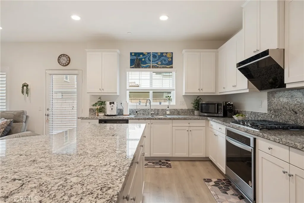 Say Hello to 7194 Crescendo Lane in the beautiful Encore at Providence, a gated community in North Fontana! Comfort, style, and convenience come together in this cozy three-bedroom, three-bathroom home, thoughtfully upgraded with modern flooring and natural light that flows through the plantation shutters, adding warmth throughout. The step-saving kitchen has granite counters, a gas stove, and a high-efficiency ventilation system for gourmet cooking. Upstairs, you will find a spacious loft with a flexible layout, ideal as a home office, entertainment space, or playroom to fit your lifestyle. Comfortable and spacious primary bedroom with plantation shutters, complemented by a large ensuite bath featuring dual vanities, a step-in shower, and a roomy dressing area. Step outside to a low-maintenance backyard with pavers, designed for easy outdoor living without the upkeep. Even better? A fully paid solar system, giving you energy efficiency and peace of mind with lower utility costs, with no worries about generating electricity. A two-car garage with direct access to the home. An EV charger, a water softener, and a tankless water heater are included. The community HOA fee of $186 per month provides access to a private neighborhood with a playground, outdoor fitness area, and large BBQ picnic areas, ideal for gatherings and family fun, all within a gated community. Location is everything here: A few minutes to the 210, 15, or 10 freeways. Enjoy a quick drive to Chaffey College and the University of San Bernardino. Only 5 miles to Victoria Gardens for shopping, dining, entertainm