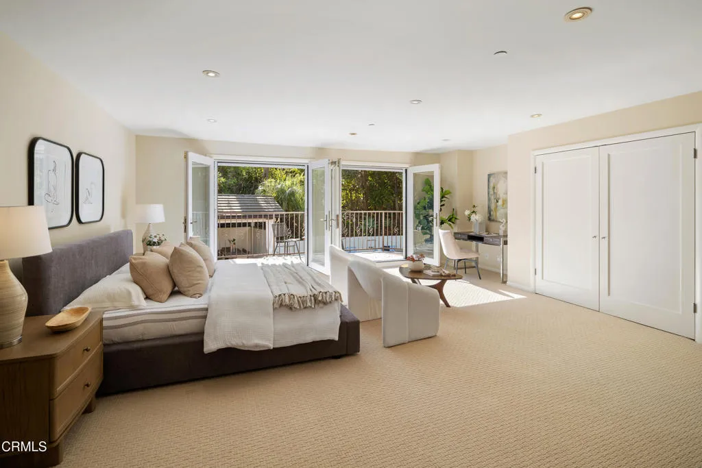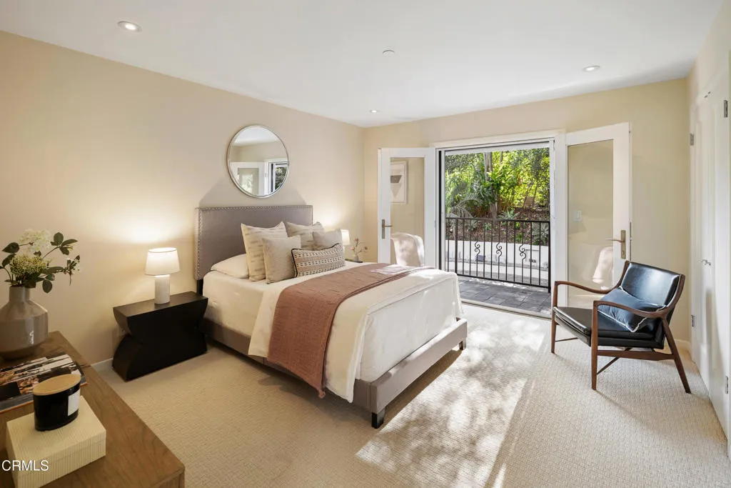 This sophisticated estate with contemporary flair offers a stunning guest house and is gracefully set on a quiet, tree-lined street in Pasadena's coveted Langham area. Exuding timeless elegance, the home has been thoughtfully curated with exquisite finishes and artisanal craftsmanship, offering a lifestyle defined by beauty, comfort, and effortless indoor-outdoor living. From the moment of arrival, a serene California sensibility unfolds, where light, nature, and luxury exist in perfect harmony.Situated on nearly half an acre of manicured grounds, the residence features four bedrooms, four bathrooms, a private office, and a guest house. The grand living room is a captivating showpiece, anchored by a dramatic fireplace and framed by elegant French doors that open to an enchanting outdoor sanctuary. The verdant backyard reveals a resort-like setting with a shimmering swimming pool, spa, and cascading water feature flowing through a natural stone bed, creating a tranquil and magical atmosphere.The sun-drenched family room continues the seamless connection to the outdoors with direct access to the pool and gardens. A custom-built office offers a refined space for work or reflection. At the heart of the home, the chef's kitchen is an entertainer's dream, featuring an expansive island, Sub-Zero and premium stainless-steel appliances, and bespoke cabinetry. A powder room, laundry room, and inviting main-level suite with pool access complete the first floor. Recent updates include fresh interior and exterior paint, revarnished wood floors, and a fully resurfaced swimming pool.Upsta