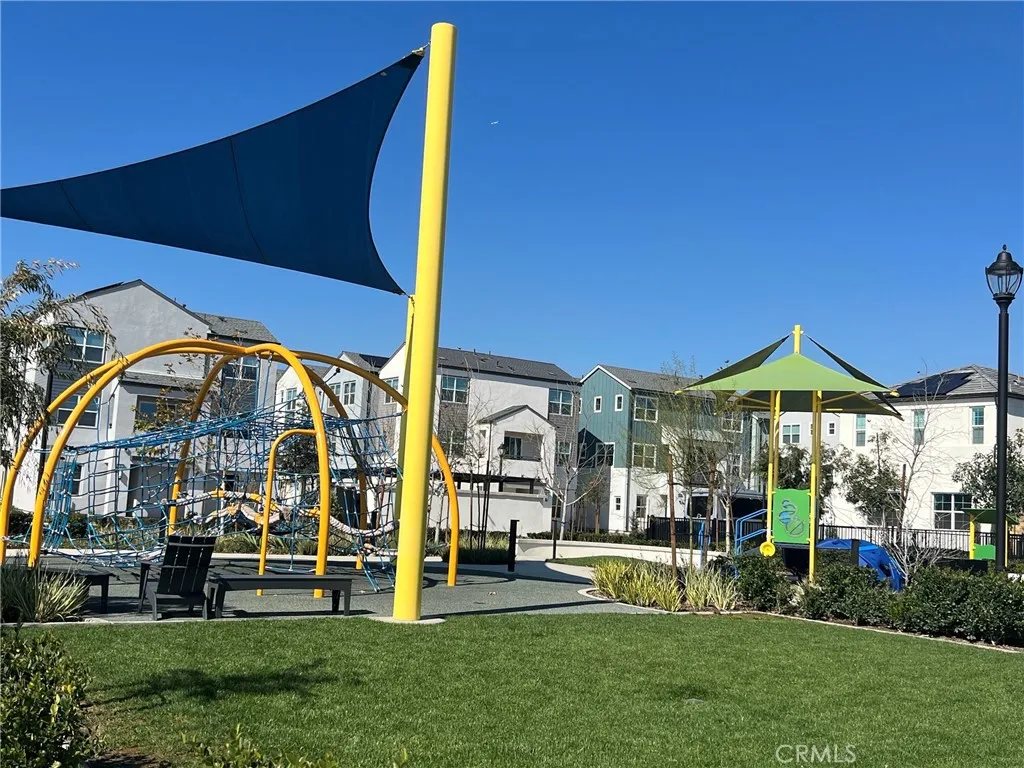 This modern detached three-story condo, Hyde Plan 1 at NUVO Parkside GATED community in the center of Ontario Ranch. SOLAR PAID OFF. This beautiful house features two bedrooms, both with their own bathroom, direct garage access, the main living area, comprising an open kitchen, white shaker style cabinets, quartz kitchen counter-top, pendant lighting over kitchen island, dining space, and living area that seamlessly opens to the second-floor deck, flooding the space with natural light and fresh air. Expect nothing less than GE stainless steel kitchen appliances and a GE stackable washer and dryer. There are two parking spaces, one in the garage and one outdoor car parking space next to the garage. The amenities include swimming pools, spa, clubhouse, BBQ grills, fire pit, indoor space for events, community fitness room, dog park, and a playground. This house is located close to grocery stores and supermarkets like Sprouts, 99 Ranch Market, Stater Bros., and Costco, etc. Fifteen to twenty minutes' drive to Ontario International Airport and Ontario Mills Mall. Close to 60 and 15 freeways.