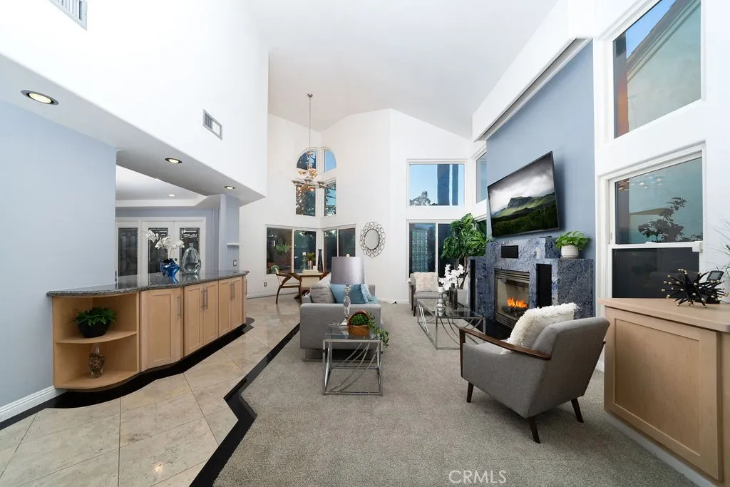 Located in the highly sought-after coastal community of Marina Hills, this beautifully remodeled home offers warmth, elegance, and effortless resort-style living. Thoughtfully upgraded, it blends sophisticated finishes with comfortable everyday livingplus a private backyard retreat that truly sets it apart. Soaring ceilings and dramatic two-story windows flood the home with natural light, creating an immediate sense of openness. The expanded open-concept kitchen flows seamlessly into the living area, forming a stunning great-room design ideal for relaxing and entertaining. Marble flooring with black granite inlays adds timeless refinement. The gourmet kitchen features a built-in KitchenAid refrigerator, Wolf range, stainless steel dishwasher, custom Schuler cabinetry, and a sleek stainless steel backsplash. Imported Blue Bahia granite enhances the kitchen and baths, while a matching custom entertainment center anchors the living space. Built-in speakers with a Sonos sound system elevate gatherings, and a remote-controlled gas fireplace with included large-screen TV creates the perfect setting for cozy evenings. Upstairs, a custom stained-glass window and skylight add architectural charm. The primary suite offers vaulted ceilings, greenery views, and coastal breezes. Its spa-inspired bath includes a walk-in closet with built-ins, dual sinks, custom cabinetry, an Ove smart toilet, and a multi-spray shower with frameless glass enclosure. Bathrooms feature granite counters, stone floors and wainscoting, stainless-steel sinks, and Hansgrohe fixtures, while the secondary bath inc