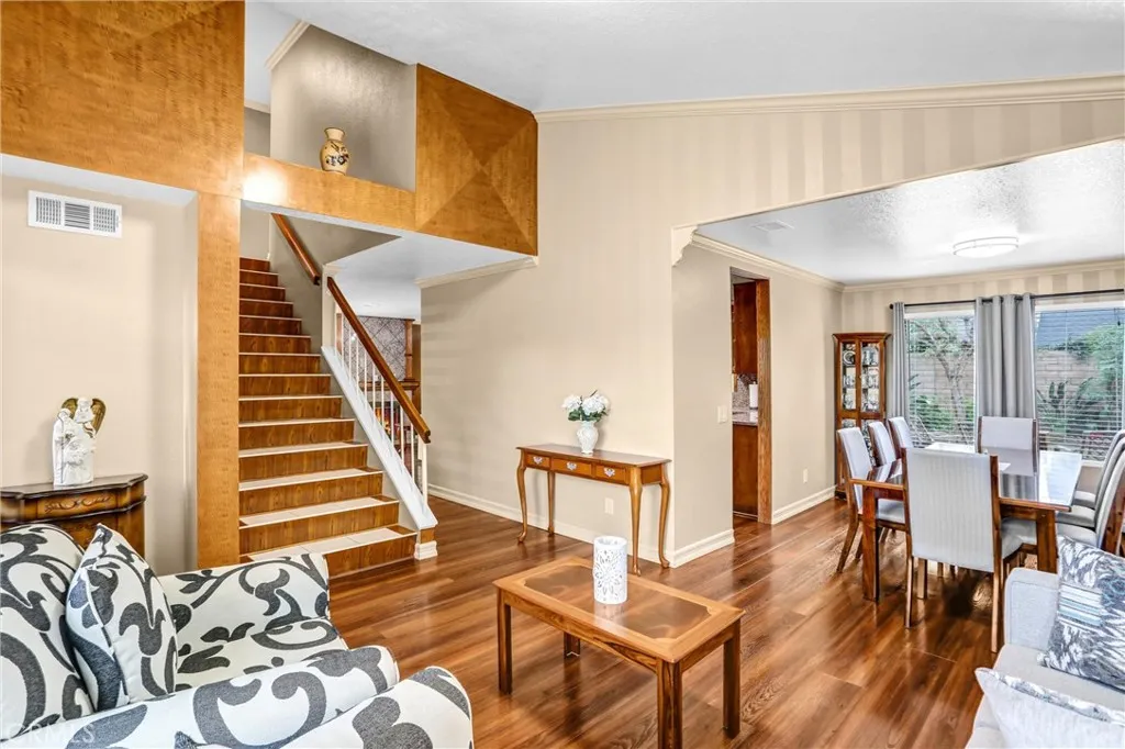 Exceptional WELL-MAINTAINED Chino Home in a PRIME Location! Welcome to this stunning 3-bedroom, 2.5-bath single-family home nestled in the heart of Chino. Located close to Chino Hills in a clean well-kept, peaceful, safe and extremely neighborly neighborhood that shows pride of ownership. Offered for the very FIRST TIME ON THE MARKET. This MOVE-IN READY property is ideal for buyers seeking for comfort, functionality and a long-term value in a desirable chino neighborhood which is conveniently located just minutes from shopping, dining, schools, and major freeways. Step inside to enjoy abundance of bright, natural lighting throughout, creating an inviting and airy atmosphere. As you step inside, you'll be greeted by the inviting ambiance of the open-concept layout. The spacious living room and dining room seamlessly flows into the kitchen, complete in a family room with cozy fireplace. Upstairs, you'll find three generously sized bedrooms, including a luxurious primary suite featuring an ensuite bathroom for added privacy and convenience. Each bedroom offers a tranquil retreat, with plenty of natural light. This home is loaded with endless upgradesfeaturing luxury vinyl wood planks throughout downstairs, custom upgraded pattern carpet in 3 bedrooms, custom window blinds with drapes, custom wood paneling walls and hand painted pattern walls plus major improvements including roof, furnace, water heater, AC condenser, garage doors/motors and many more for long-term peace of mind. The home features a 3-CAR GARAGE a unique find for its size providing ample space for parking, st