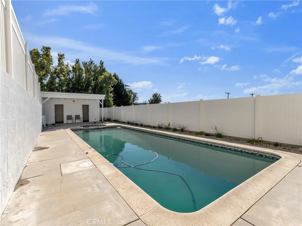 Tucked away on an oversized 11,042 sq. ft. flag lot, this beautifully refreshed single-story home with 4 bedrooms, 2.5 baths, and 1,740 sq. ft. delivers the rare combination of privacy, functionality, and outdoor living. Set back from the street behind a gate, the property creates a peaceful and secluded atmosphere from the moment you arrive. Inside, youll appreciate the fresh new paint inside and out, creating a bright, clean, move-in ready feel. Dual-pane windows bring in natural light while enhancing comfort and efficiency, and the newer roof adds peace of mind for years to come. The flexible floor plan includes a bonus opportunity with half of the two-car garage converted into an unpermitted 5th bedroom, ideal for guests, a home office, or creative space. Step outside and youll discover your own private oasis. The sparkling pool and spa area is perfect for sunny afternoons, relaxing evenings, and weekend gatherings. With all new landscaping and multiple outdoor areas, the backyard offers plenty of space to lounge, entertain, play, and enjoy the best of indoor-outdoor living. Located close to local dining, shopping, parks, and neighborhood schools, this home combines privacy with everyday convenience. Whether youre looking for a peaceful escape or the perfect place to host family and friends, this home offers a lifestyle thats both relaxed and refined.