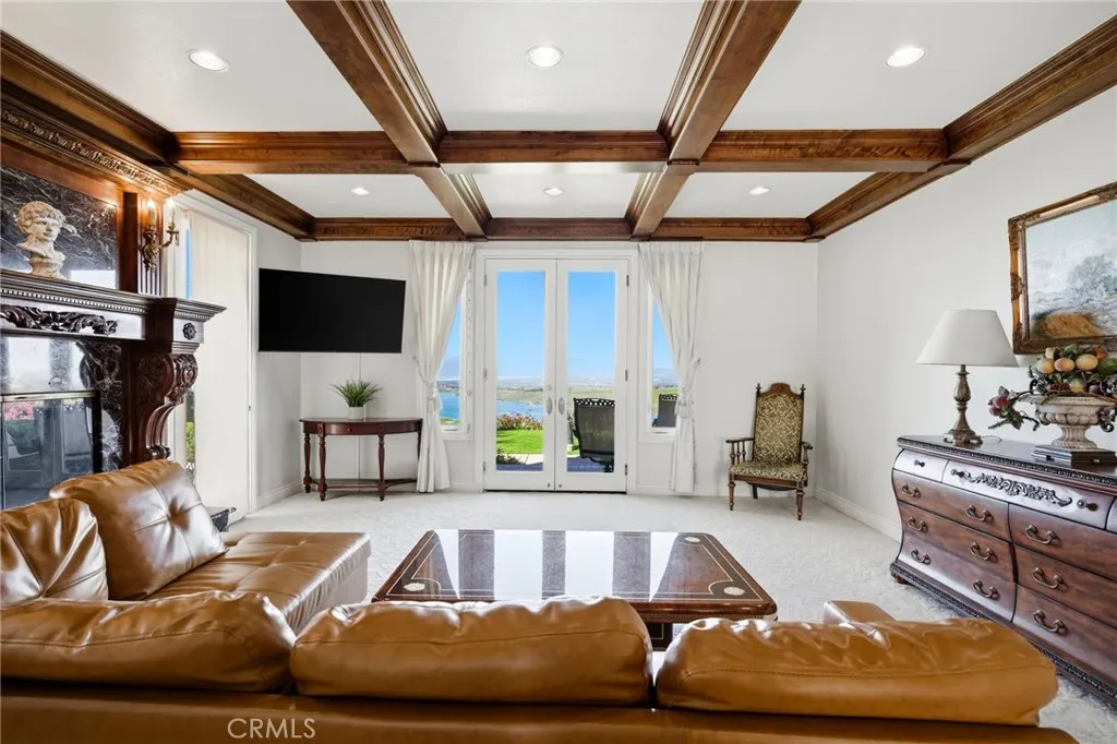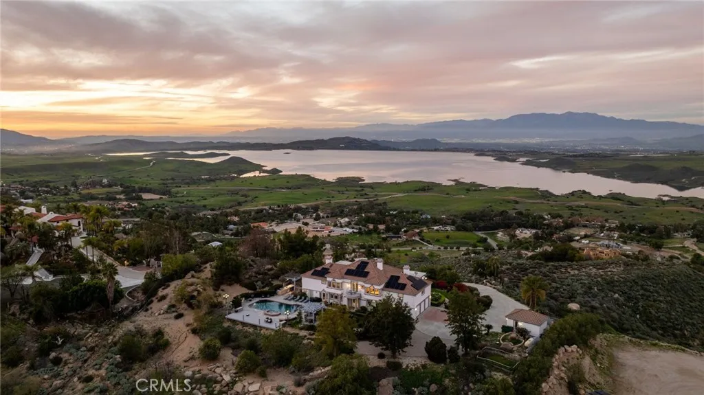 Positioned on 4.33 acres overlooking Lake Mathews, this exceptional custom estate offers Panoramic Lake, Valley & Mountain Views | Gated Entry | Private Hilltop Setting. Enjoy sunrises to the east | sunsets to the west | seasonal snow-capped mountain views, creating a dynamic natural backdrop. The residence blends classic architectural presence with modern amenities and a private hilltop setting. A Gated driveway leads to a spacious interior featuring Soaring Ceilings | Multiple Living Areas | Formal Dining | Library/Office. The chefs kitchen includes Granite Countertops | Custom Cabinetry | Stainless Appliances, opening to the family room with Fireplace | Open-Concept Entertaining. The primary suite offers Sitting Area | Double-Sided Fireplace | Spa-Style Bath | Multiple Balconies | Scenic Views. Outdoor amenities include Pebble-Finish Pool & Spa | Covered Patios | Two Cabanas | Built-In BBQ Island | Landscaped Grounds | Fruit & Citrus Trees | Elevated Stone Paver View Patio. Currently utilized by the seller for short-term rental use | Income-producing configuration | Historical rental information may be available upon request. The property offers added flexibility with two legally distinct parcels (separate APNs), providing future development or expansion considerations subject to Riverside County approval and buyer verification. Features such as NO HOA | SOLAR PANELS | Detached Workshop | Extensive Parking may support a variety of ownership strategies including luxury retreat use, multigenerational living, or long-term investment positioning. R-A-2 1/2 zoning and the pri