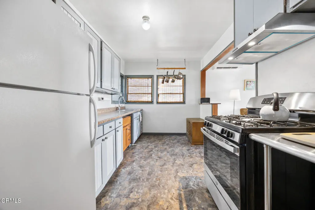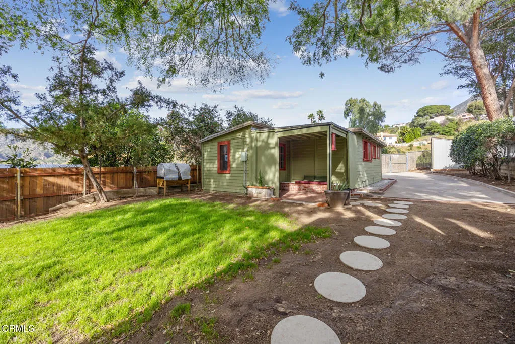Perched above the city, this rare dual-residence property offers breathtaking sunset views to the south and serene hill and canyon vistas to the north -- the perfect blend of privacy, beauty, and versatility. The main home features 2 bedrooms, 1 bathroom, and 1,014 square feet of thoughtfully designed living space. Inside, you'll find ductless heat and cooling, newer vinyl flooring and a bright, airy living room with a vaulted open-beam ceiling that floods the space with natural light. Enjoy fabulous sunset views from the comfort of your own home! The home is filled with whimsical details and charming character touches that make it truly one of a kind. The beautifully landscaped rear yard provides a peaceful outdoor retreat with generous separation from the guest house, creating privacy for both residences, and ideal for relaxing evenings, pet play, or year-round entertaining.The approximately 427 square foot 1 bedroom, 1 bathroom guest house is a standout in its own right. With a private rear entrance and its own yard, it lives independently and comfortably. A charming front porch welcomes you inside, where you'll find ductless heating and air conditioning, a new water heater, a new copper main water line, and fresh interior paint. An ideal space for extended family, guests or a home office. The expansive lot offers even more flexibility, featuring a rear storage room and a newer detached artist studio complete with its own heat and air split unit -- perfect for creative space, remote work, or additional possibilities!This unique property combines scenic beauty, thoughtful