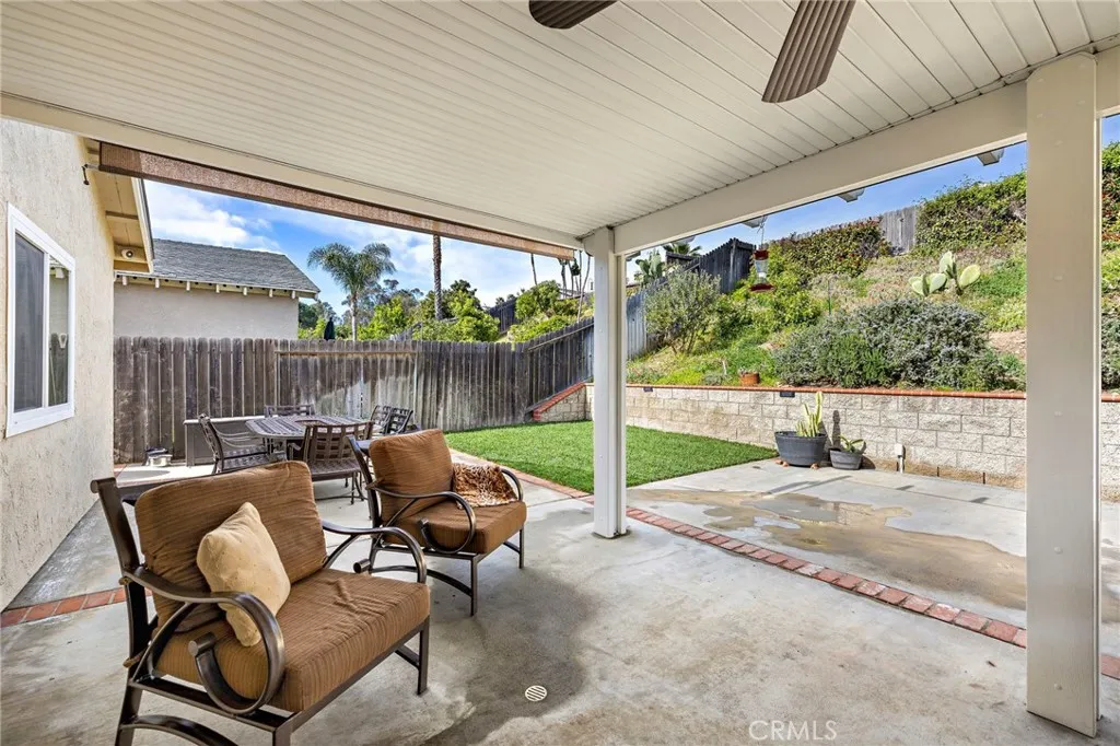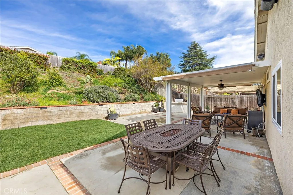 Welcome to 27271 Pinocha in the heart of South Mission Viejo. This well-maintained, move-in ready single-story home in the sought-after Cordova South neighborhood offers 3 bedrooms, 2 bathrooms, and easy single-level living on a generous 5,625 sq ft lot. A private wrought iron gate opens to a charming courtyard entry. Inside, the freshly painted interior features a cozy gas fireplace in the living area that flows naturally into the kitchen with generous counter space, ideal for everyday living and entertaining. Sliding doors off the kitchen lead directly to the backyard, making indoor-outdoor living seamless. All three bedrooms are conveniently located on one level. The backyard is where this home truly shines. A large covered patio with a ceiling fan creates the perfect outdoor living room, complete with a built-in BBQ island and space for both dining and lounging. Beyond the patio, a grass lawn area is bordered by a terraced hillside with established landscaping and a block retaining wall, adding depth and privacy to the yard. Up front, a brick-accented driveway leads to the attached 2-car garage with a side yard access gate. A mature citrus tree and manicured front lawn round out the curb appeal. The home is located within walking distance of the award-winning Carl Hankey TK-8 Academy, nearby parks, trails, and green belts. Mission Hospital and The Shops at Mission Viejo are just minutes away. Situated with easy access to Crown Valley Parkway, local shopping, dining, and the 5 Freeway, daily conveniences are close by. Single-story homes in Cordova South are highly sought