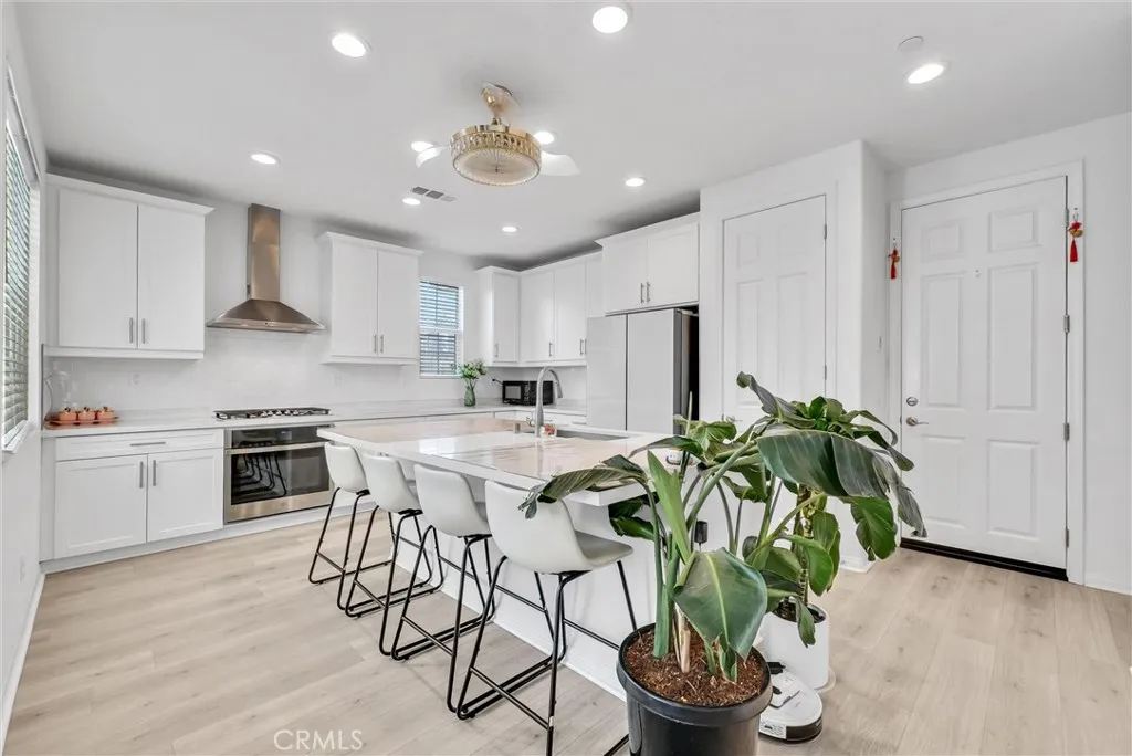 Welcome to this newly home located in the top-rated Etiwanda School District. Built in 2023, This home Nestled in a gated community with a sparkling pool/Spa and family-friendly amenities. This residence provides modern comfort and elegant upgrades throughout. The open concept style home offers great space and natural lights. The spacious kitchen showcases upgraded soft-close cabinets, back splash, quartz countertops, and luxury vinyl flooring extending throughout the main level. In addition, it includes a three-car side-by-side garage with two independent garage doors, providing ample parking and storage space. The primary suite offers a soaking tub, separate shower, dual vanities, and a private toilet room. The home is upgraded and move-in ready condition. Conveniently located within short distance to the school, shopping center, dining, and easy access to nearby 210 and 15 freeway this upgraded resident perfectly combines style, comfort, and location!