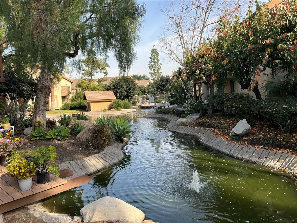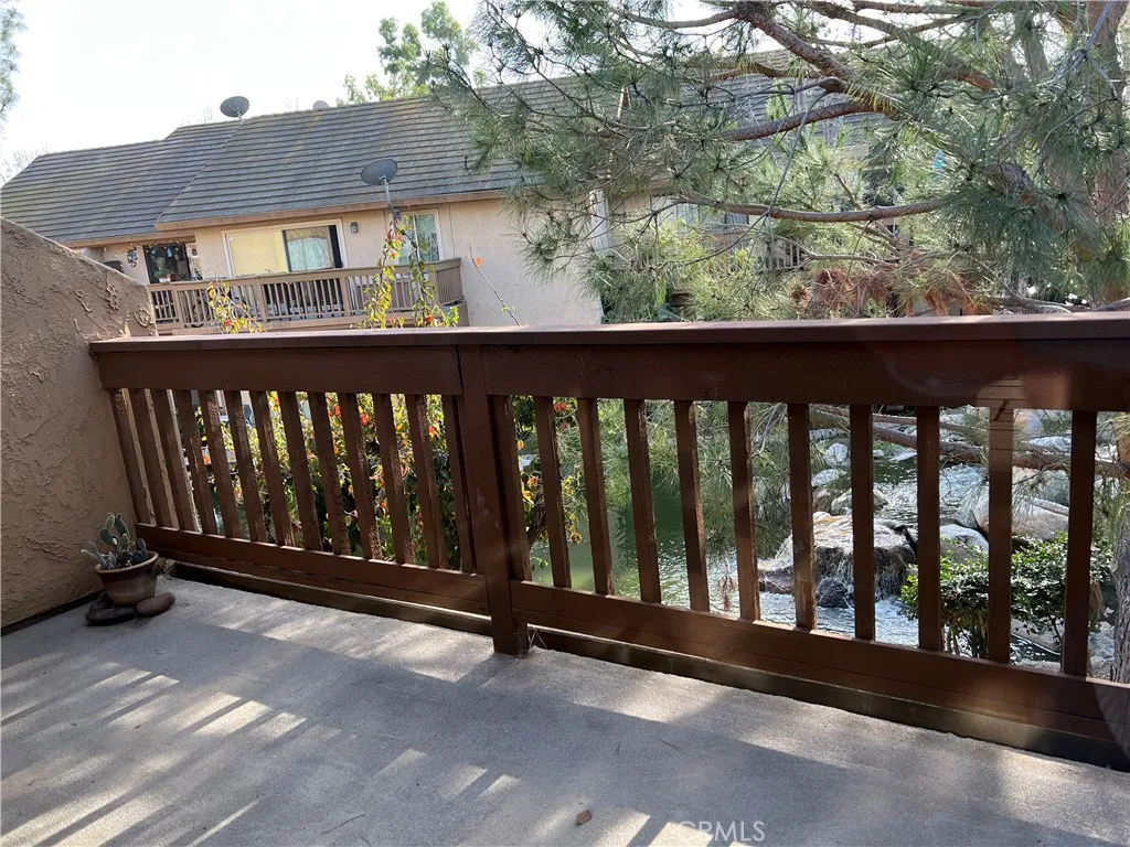 Upper Carriage unit with Balcony over looking Cascading stream will put you to sleep , just the sound of relaxation . Newer painted interior neutral color feeling light and open .. Downstairs offers remodeled Kitchen with fridge and granite counters. Main floor bedroom with remodeled bath, Dining area combines with open family room , leading to Balcony to enjoy a glass of wine overing looking stream ..Flooring on main floor offers custom tumbled stone . stairway leads to large private loft perfect for in home office or could be used as a second BR with newer carpeting .. unit offer carport parking # 406 . Unit has use to community tennis courts and pool nearby . unit is located in building 33 . This unit is move in ready condition for quick occupancy .