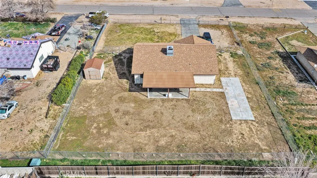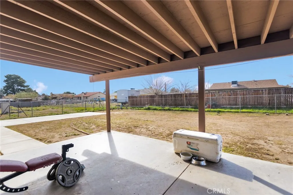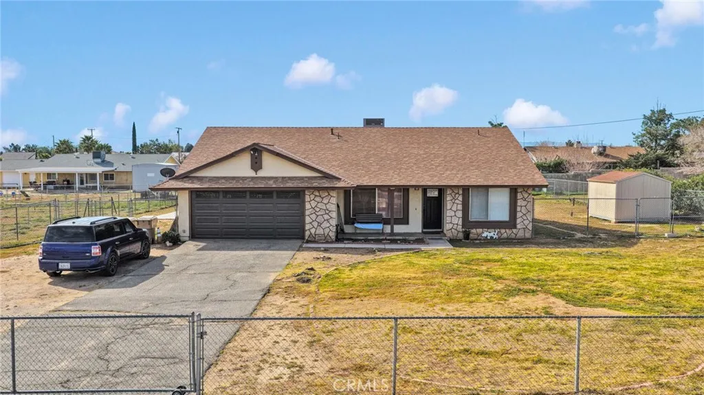 Welcome to this charming 3-bedroom, 2-bathroom home situated on a generous 0.4-acre lot in Hesperia. Offering 1,512 square feet of living space and a 2-car garage. As you step inside, youre greeted by the living room featuring laminate flooring and an open floor plan that seamlessly flows into the beautifully remodeled kitchen. The kitchen is a true standout, showcasing navy blue cabinetry, quartz countertops, a large center island, stainless steel appliances, and a walk-in pantry, perfect for entertaining and everyday living. The home offers two spacious secondary bedrooms and a full bathroom. The primary suite provides two separate closets and a primary bathroom featuring a walk-in shower. Step outside to enjoy the expansive fully fenced backyard, ideal for outdoor gatherings, toys, pets, or future projects. The yard features a covered concrete patio, a separate 32x12 concrete slab ready for a workshop or carport, a storage shed, and RV access. Conveniently located near Main Street, this home offers easy access to shopping, restaurants, pharmacies, schools, and the 15 Freeway, making commuting and daily errands a breeze.