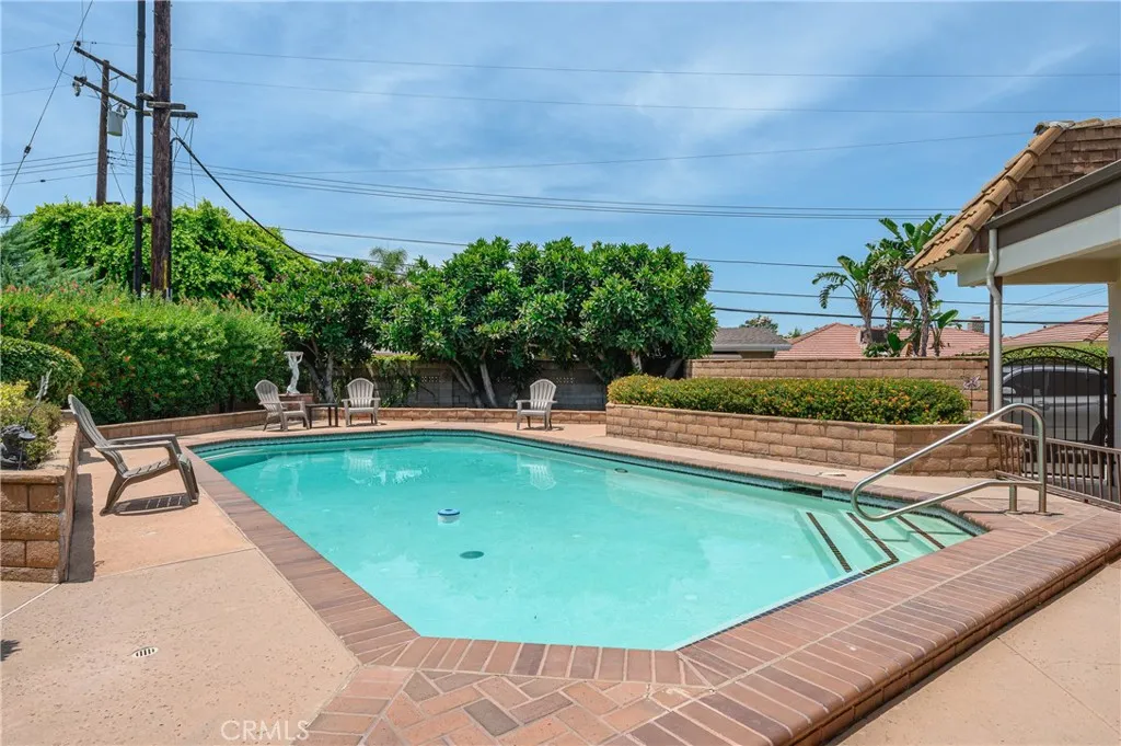 This two-story residence boasts 4 generously sized bedrooms 2 on the main level and 2 on the lower level. The open-concept living and dining areas are illuminated by large double-pane windows, filling the space with natural light. Downstairs, the expansive family room offers built-in shelves, a tiled fireplace, and a bar area complete making it an ideal spot for gatherings. The home is set on a sprawling 16,000 sq. ft. lot, which includes a large backyard with a covered patio, a sizable pool, a well-maintained lawn, and an orange tree among other vegetables. Furniture and utilities are not included in the price