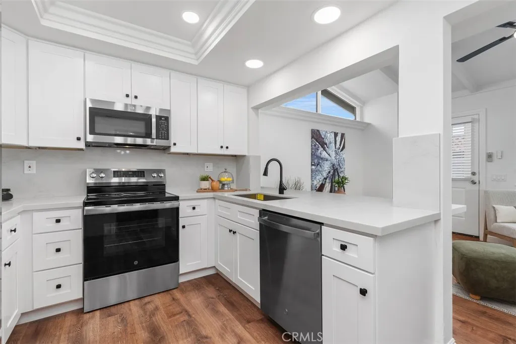 Located in the prestigious West Nine community of Laguna Niguel, this beautifully updated SINGLE-LEVEL DETACHED condo offers comfort, style, and coastal living. The 3 bedroom, 2 bath residence features over 1,600 square feet of light-filled living space with vaulted ceilings, abundant windows, recessed lighting, and elegant wood flooring. The open floor plan creates a seamless flow between the living and family areas, perfect for everyday living and entertaining. The updated kitchen features quartz countertops, self-closing cabinetry, and newer stainless steel appliances, while the indoor laundry area includes a washer and dryer for added convenience. The primary suite offers a peaceful retreat with an updated bathroom and spacious walk-in shower. Two additional bedrooms provide flexibility for guests, family, or a home office and share an updated secondary bathroom. Enjoy relaxing on the private balcony, ideal for morning coffee. Additional highlights include fresh interior paint, new HVAC system & duct, a nearby detached two-car garage, and ample guest parking. The HOA covers water, trash, roof, exterior maintenance, and landscaping for easy, low-maintenance living. Ideally located near the Laguna Niguel Racquet Club, El Niguel Golf & Country Club, Salt Creek Beach, Dana Point Harbor, and luxury coastal resorts. With convenient access to CA-73 and I-5, premier shopping, dining, parks, and scenic trails are just minutes away. Situated in a highly regarded Blue Ribbon school district and less than three miles from the beach, this rare West Nine home offers an exceptional op