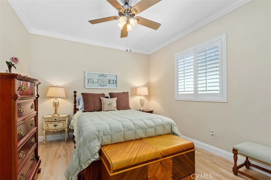 Absolute Beauty!! The attention to detail makes this home a must see in this highly desirable 55+ community, the Oasis. The beautiful, beveled glass door welcomes you into this pristine well-designed home with open floorplan. The front room showcases as a formal living or sitting room with its elegant crystal lighting feature, crown molding, and plantation shutters. The immaculate kitchen features upgraded cabinets, stainless steel appliances including brand new dishwasher, quartz countertops, walk-in pantry with etched-glass door, center island and is open to dining area and the family room with its lovely mantled fireplace. You will find well thought-out, refined features throughout this home which include delicate moulding artfully crafted to enhance the home and architectural corbel and transom windows adding elegance and formality to each space. High-quality laminate flooring with aesthetics of real wood is featured throughout the home. Spacious master bedroom offers sliding glass doors accessing the back yard, plantation shutters, and ceiling fan, with remodeled master bathroom featuring walk-in shower, designer cabinetry, quartz countertops, large walk-in closet with storage space. There are two other spacious rooms, one is an office/craft room and the other a guest bedroom. All rooms have ceiling fans, plantation shutters, base and crown moulding. The backyard is a personalized golfers oasis with mini multi-hole putting greens. The owners put love and care and over $100k in upgrades making this home a treasure. The HOA offers top-notch amenities; a 22,500 sq ft club