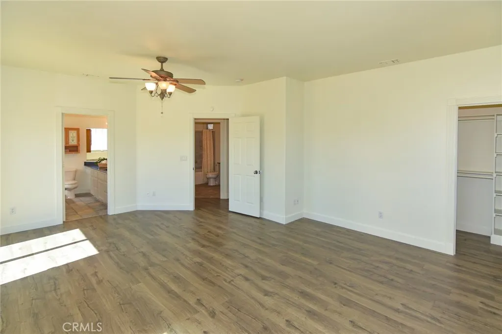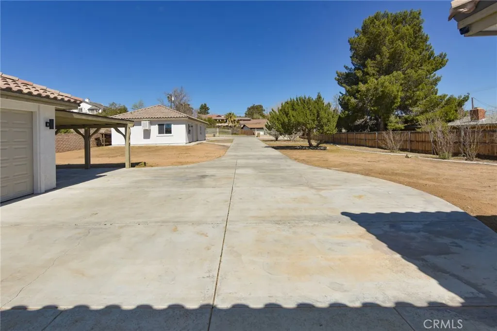 3BR/2BA home with open bonus room in Hesperia. Canyon and golf course views. 2,306 sq ft built 2002 on 43,910 sq ft lot. 744 sq ft shop with bath. This 3 bedroom, 2 bathroom home in Hesperia offers 2,306 square feet of living space on a 43,910 square foot lot, just over one acre, with canyon views stretching toward the Hesperia Golf Course. Built in 2002, the home includes an open bonus room currently used as an office that could function as a fourth bedroom, workspace, or additional living area if enclosed. The fully fenced and gated property includes a concrete drive from the entrance to the home and a separate drive leading to the detached shop. Inside, the living room features vaulted ceilings and a fireplace installed during the original 2002 construction. The remaining areas of the home feature approximately eight foot ceilings, with the primary bedroom also offering elevated ceiling height. Laminate and tile flooring run throughout the home for durability and easy maintenance. The kitchen includes hard surface countertops along with a new stove, new dishwasher, and microwave. The dining area opens to a covered 384 square foot patio positioned to capture sunrise and sunset views across the canyon landscape. The primary bedroom suite includes a spa tub, separate shower, and sink area. Central heating and air conditioning include an oversized AC unit designed to maintain consistent comfort. Laundry is located in the attached garage. In addition to the approximately 442 square foot attached two car garage, the property includes a permitted 744 square foot detached shop b