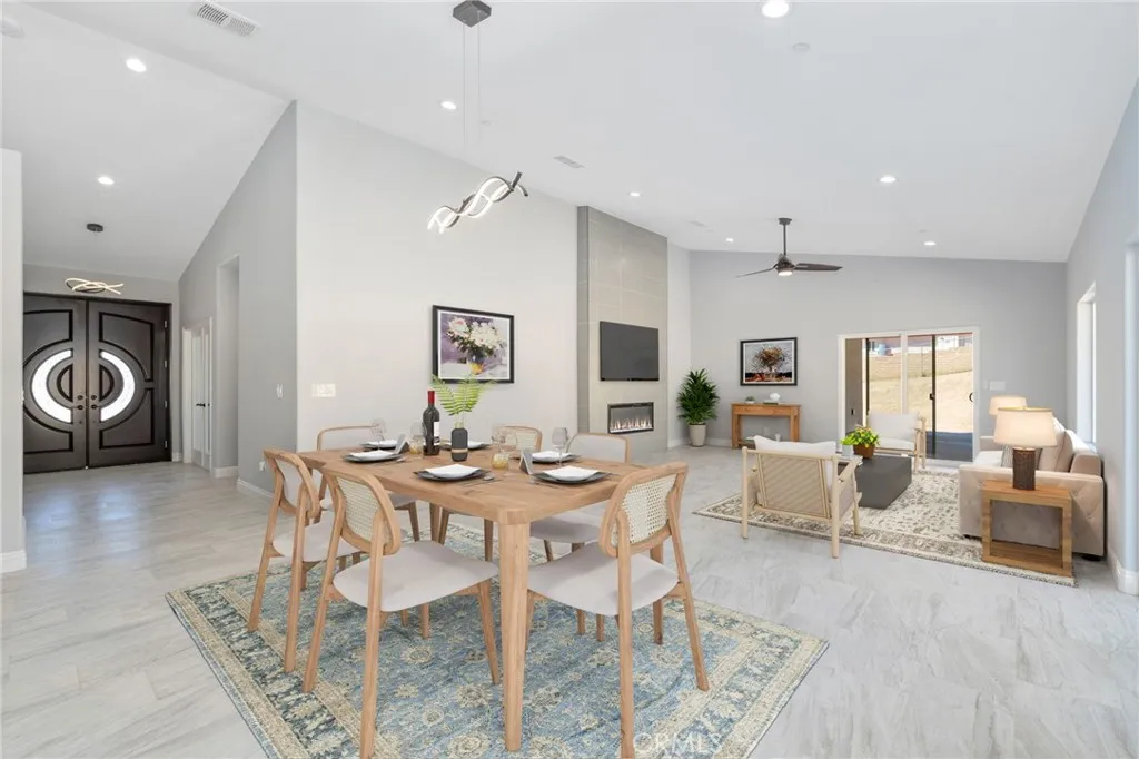 Welcome to this beautiful custom new construction home in Hesperia! This single-story home offers 2,212 sq ft of living space on a 20,585 sq ft corner lot, featuring 4 bedrooms and 3 bathrooms with a spacious open-concept layout and spacious wrap around backyard. The kitchen opens to the living and dining areas and includes upgraded cabinetry, custom flooring, modern lighting, and stainless steel appliances. Additional highlights include a smart home system, Cat-6 wiring throughout, USB-C outlets, a security camera system, Ring doorbell, paid solar system, tankless water heater, EV-ready 3-car garage, and RV parking with clean-out, plus so much more. Conveniently located near shopping, dining, and local amenities, this home offers modern living with space and functionality. Dont miss the opportunity to call this home yours!
