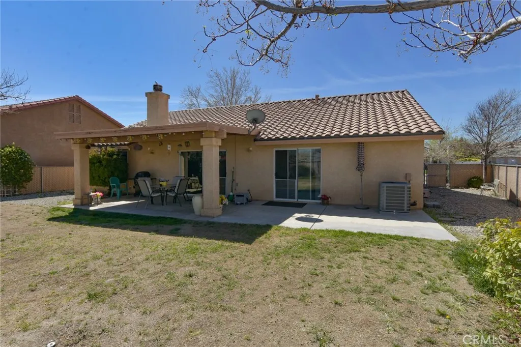 3BR/2BA home in Silver Lakes in Helendale. 1,560 sq ft on 9,100 sq ft lot. Gas fireplace, covered patio, 2-car garage. Built 1999. HOA golf, lakes, pool. This 3 bedroom, 2 bathroom single family home in the Silver Lakes community of Helendale offers 1,560 square feet of living space on a 9,100 square foot lot. Built in 1999 and well maintained, the property includes a two car attached garage, indoor laundry, and a covered backyard patio designed for comfortable everyday living. The main living area is open from the kitchen and features a gas fireplace and direct access to the covered patio, creating a natural extension between indoor and outdoor space. The kitchen and bathrooms include tile flooring, while the bedrooms feature carpet. The layout supports both daily routines and casual gatherings, with a spacious living room that opens to the backyard. Recent updates include interior and exterior paint completed within the past three years and a water heater installed approximately 1.5 years ago. The home also offers side yard access, a backyard storage shed, and landscaped front and rear yards. The backyard is fully fenced for privacy and includes a covered patio ideal for outdoor seating or dining. Silver Lakes is a planned community offering a wide range of recreational amenities. Residents have access to a championship golf course, lakes for boating and fishing, community pool and spa, pickleball courts, fitness center, library, and community center. The HOA fee is $235 per month. The property is located in Helendale with convenient access to the Victor Valley region whi