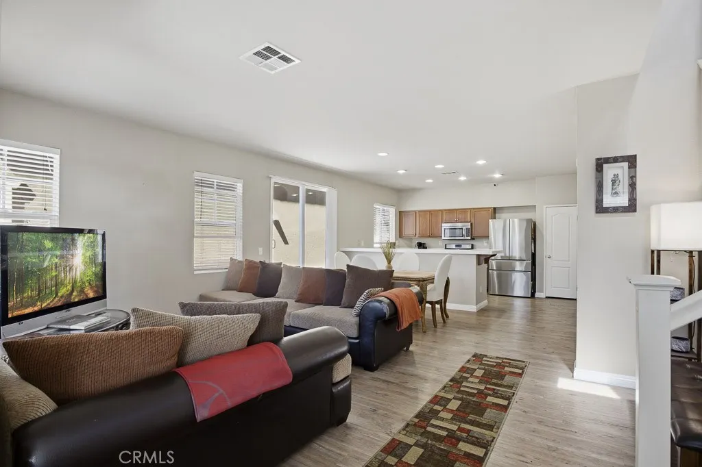 Welcome to this lovely 3-bedroom, 3-bathroom home with a versatile loft, located in the desirable gated community of The Vineyards. Perfectly positioned on a lush greenbelt and situated on a private corner lot, this home offers both comfort and tranquility. Step inside to find warm wood flooring downstairs and an open-concept layout that seamlessly connects the living room, dining area, and kitchenideal for everyday living and entertaining. The kitchen features recessed lighting, stainless steel appliances, and a peninsula with barstool seating for casual dining. The dining area opens to a private patio through sliding glass doors, creating an effortless indoor-outdoor flow. A convenient half bathroom and dedicated laundry room complete the downstairs. Upstairs, youll find a loft that can be used as a home office, playroom, or additional living space, along with all bedrooms including the primary suite with its own ensuite bathroom. Additional highlights include an attached 2-car garage, offering both convenience and ample storage. Residents of The Vineyards enjoy access to exceptional community amenities, including a volleyball court, half basketball court, 2 playgrounds, BBQ areas, grassy gathering space, ample guest parking, and beautifully maintained landscaping throughout. Ideally located near downtown Palmdale, this home offers easy access to shopping, dining, and schools. Dont miss the opportunity to make this your next home!