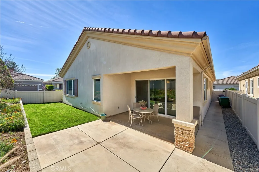 Welcome to this clean and beautifully kept "Trillion" model on a quiet street in the 55+ guard-gated community of Solera. This private corner lot home offers easy, low-maintenance living in a peaceful setting. The home inside gives a bright, joyful an comfortable feeling. The kitchen features Corian countertops and opens up to the main living area, giving the home a spacious, open flow. The yard is designed for low maintenance and easy upkeep, and the SELLERS ARE OFFERING A $2,500 CREDIT TOWARD LANDSCAPING OR OTHER IMPROVEMENTS. Solera is a 24-hour patrolled gated community with many activities and groups to join at the clubhouse. . Fun occasional group trips around California have been known to happen as well. Your cable TV and internet are also included. The Solera clubhouse has an indoor walking track, gym/fitness center, tennis courts, pool/spa, library, bocce ball court, banquet/meeting/card rooms and pool tables. Solera offers convenient access to the 10 freeway, making it easier to avoid heavier traffic. Solera is just a short drive to Cabazon outlet shopping and Morongo Casino, the best golf courses around, Palm Springs, Redlands, and the scenic mountain towns of the San Bernardino National Forest.