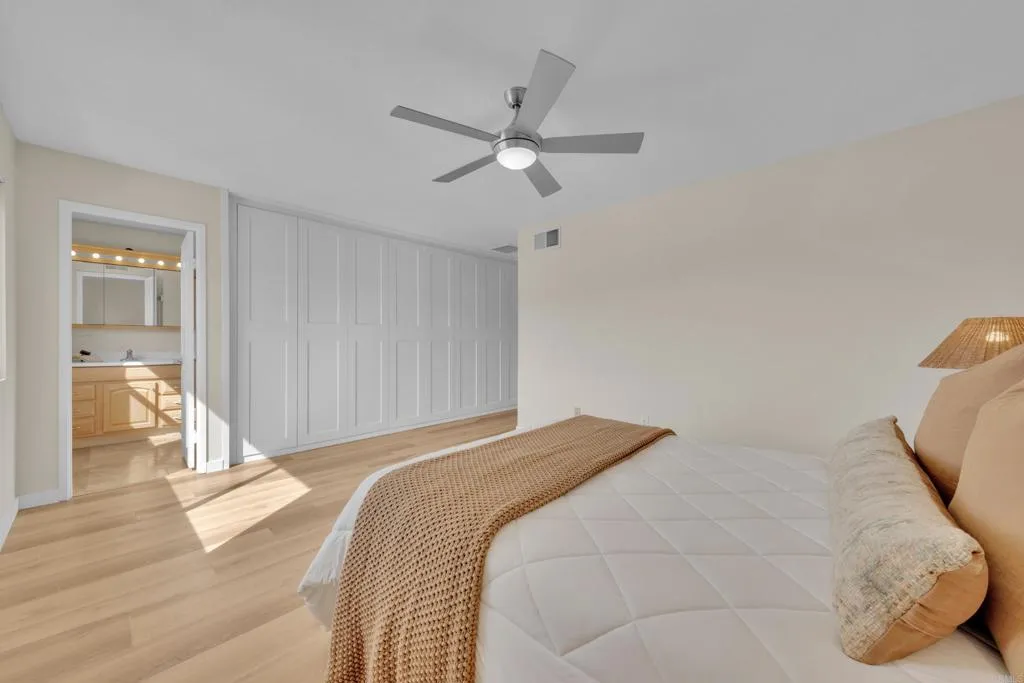 Welcome to 11033 Hillcreek Road, a beautifully sleek 5 bedroom home with a sparkling pool and amazing views. The home backs up to the walker trail preserve, so no one behind you but the peace and serenity of nature as you sit by the pool for a morning dip, or just take in the songs of the birds with your coffee. You will love the new kitchen with high end stainless steel appliances and built in espresso/coffee maker, warm fireplace, and modern organizational closet system with interior lighting throughout. Features include, a separate spa and many mature fruit trees, soothing front fountain water feature. Energy efficient with a fully paid solar system, whole house fans, Attic with an auto gable fan, whirly bird ventilation, R-30 insulation in attic, Low-E windows, tankless water heater, and low energy IntelliFlo pool pump. New A/C and separate mini split in 5th room. Roof and Solar are approximately 7 years old. 5th bedroom is a garage conversion and can easily be converted back to a garage if desired. Just steps away from the walking trails and Hillcreek Elementary School. Close to highways, and shopping. You will fall in love with this home, tucked away in one of Santee's coveted hidden gem neighborhoods.