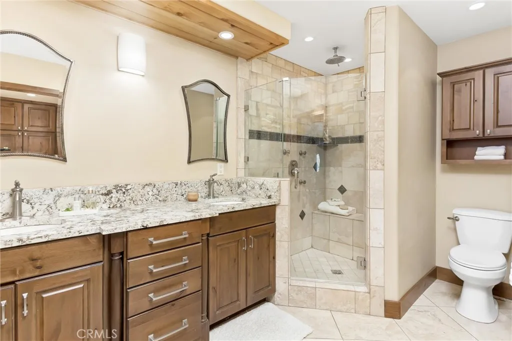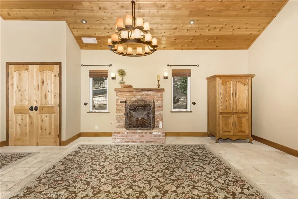Welcome to one of Crestlines most exceptional mountain retreatswhere thoughtful design, quality craftsmanship, and modern comfort come together. Rebuilt from the ground up in 2012, this is not your typical cabinits a fully reimagined home designed for everyday living or the perfect getaway. From the moment you arrive, youll appreciate rare, level parking for up to 6 vehicles plus a garagean incredible convenience in the mountains. Inside, the main level welcomes you with soaring 14 vaulted cedar ceilings and the original brick fireplace, beautifully preserved as a warm and inviting focal point just off the kitchen. The kitchen is both functional and stunning, featuring leathered granite countertops, custom cabinetry, and an open flow that naturally leads into the show-stopping family room. Here is where the home truly comes alive16 vaulted cedar ceilings, a massive stone fireplace anchoring the space, and expansive windows that bring the outdoors in. With direct access to a large deck complete with a gas line for BBQ, this is the ultimate entertainers spacewhere mountain views, fresh air, and unforgettable gatherings come together. The main level also includes a guest bedroom with its own private deck and a full bathroom featuring a jetted, heated tubperfect for guests or quiet relaxation. Just beyond the family room, a staircase leads to the lower level, offering a private retreat-style layout. The spacious primary suite features its own fireplace, a spa-inspired bathroom with a walk-in shower with wall jets and overhead rain shower, and direct access to a private deck wit