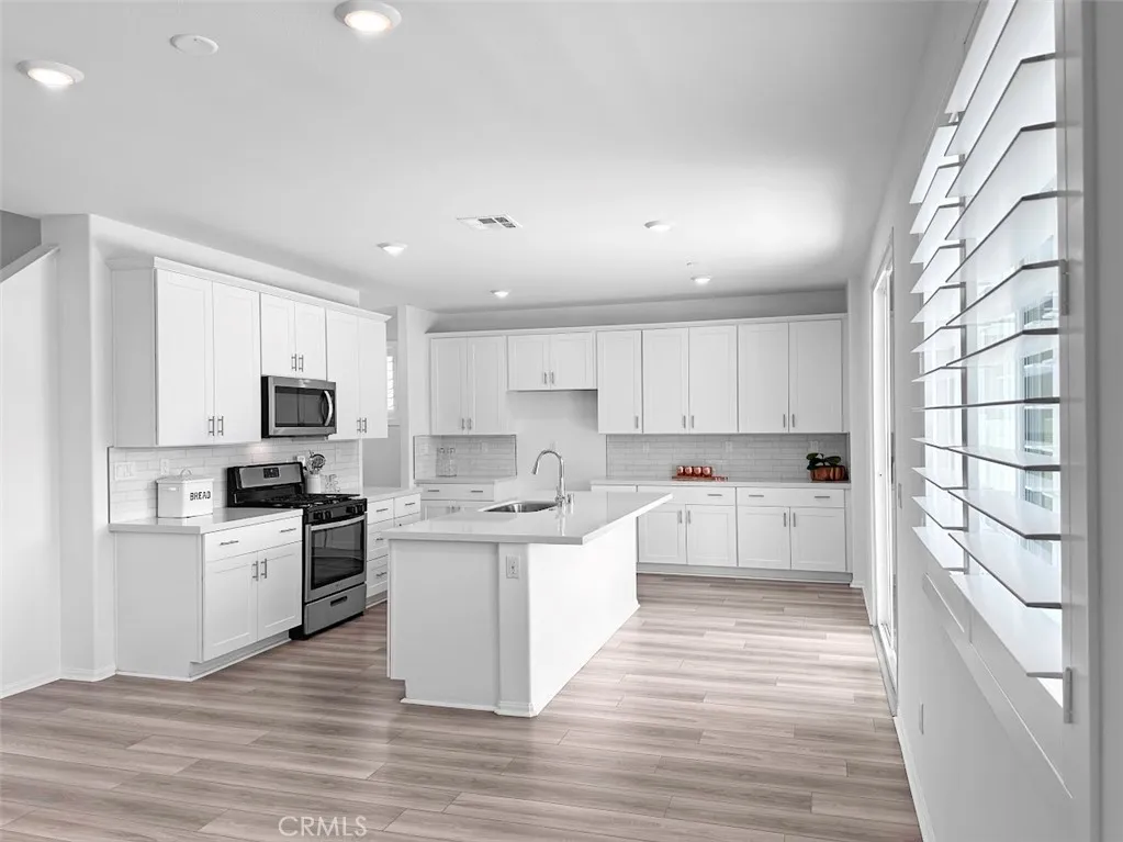 Welcome to this exceptional turn-key 5 bedroom / 3 bathroom home built in 2022, located in highly desirable Audie Murphy Ranch communitywhere family living meets modern convenience with nearby parks, pools, and scenic trails. Designed with families in mind, the open-concept great room seamlessly connects the spacious family room, dining area, and upgraded kitchen featuring shaker cabinetry, quartz countertops, tile backsplash, stainless steel appliances, center island with breakfast bar and a spacious walk-in pantry. A downstairs bedroom and full bath offer flexibility for guests or multi-generational living. Upstairs, enjoy a versatile loft ideal for a playroom or media space, convenient laundry room, and a light and bright primary suite with a large walk-in closet and gorgeous primary bathroom with dual-sinks. The backyard offers a covered patio and grassy areaperfect for or entertaining with plenty of room to play. Centrally located with direct access to 15 and 215 freeways and conveniently close to area parks, schools, shopping, restaurants and so much more!