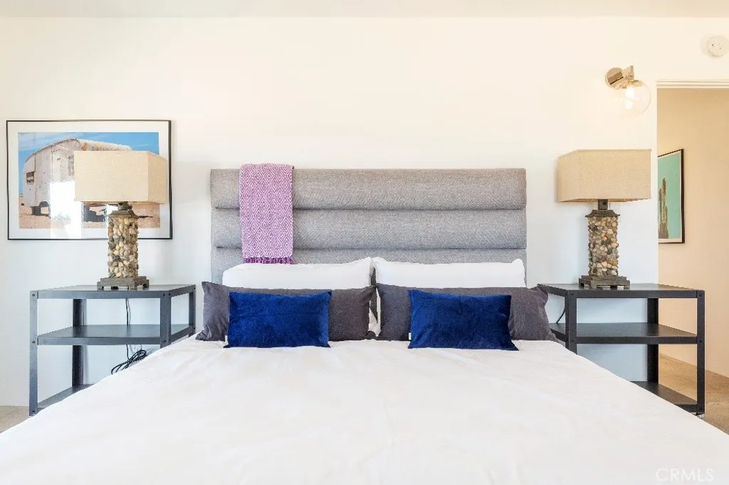 Welcome to The Flag Ranch! A wonderful, reimagined 1954 Homestead cabin on 2 beautiful view acres, combining vintage Americana with modern design, offering stunning sunsets and glorious sunrises from the large covered porch. Featuring 2 large bedrooms, 1 bathroom and 1161 sq. ft ; this home comes turnkey furnished, including newer stainless steel appliances, a large eat in kitchen, views from every room, and perfectly styled furnishings by Doug Wiand of HGTV that create a warm and inviting desert retreat. Just step right in! Location, Location, Location... This home is centrally located, close to desirable hot spots. Only 20 minutes to Pappy & Harriet's, 25 minutes to the west entrance of Joshua Tree National Park, and close to the Integretron and King Of The Hammers. Bonus: it is only one mile from one of the High Desert's most popular restaurants, La Copine, which has been featured in The New York Times, Vogue and Eater LA. Perfect for a nice stroll during our beautiful Spring and Summer evenings. Take time to relax in your Jacuzzi hot tub, and snuggle up around the firepit. This home is currently an active vacation rental, but can also be a great primary or secondary home. Whether you're stargazing, exploring the park, or just relaxing in total desert privacy, The Flag Ranch is your perfect High Desert property.