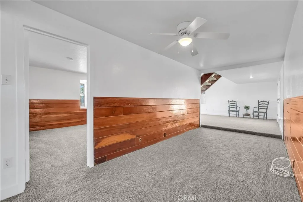 Beautifully refreshed property offering ample space and versatile use. Recently painted inside and out with custom colors, this home sits on a total of 1.54 acres. The 1.54 acres is made up of a 1.27 acre main parcel with an additional .27acre lot providing extra flexibility, privacy, or future potential. The property features an impressively large garage with approx 3,500 square feet of space, perfect for car enthusiasts, hobbyists, or anyone needing substantial workspace. Complete with RV parking and its own toilet, this garage is a rare and valuable addition. This home offers 3 bedrooms and 1 bathroom, thoughtfully updated with new carpet and a beautifully tiled shower enclosure. Inside, youll find a warm and inviting living room with wood ceilings and a sliding glass door that opens to the backyard, creating a seamless indoor,outdoor flow. A separate family room features French doors leading to a covered patio, ideal for relaxing or entertaining. A standout feature of the home is the upstairs bedroom area, providing additional flexible living space making it perfect for a home office, playroom, or guest area. Enjoy a cozy window seat, an ideal spot to relax and take in the beautiful views. The home also includes a dedicated indoor laundry room, offering added convenience and organization. The fenced backyard features a lush, plush lawn, offering plenty of space to enjoy the outdoors. Take in the scenic views both from the kitchen window and while standing on the property, adding to the peaceful and inviting atmosphere. In addition, a separate outbuilding contains approx