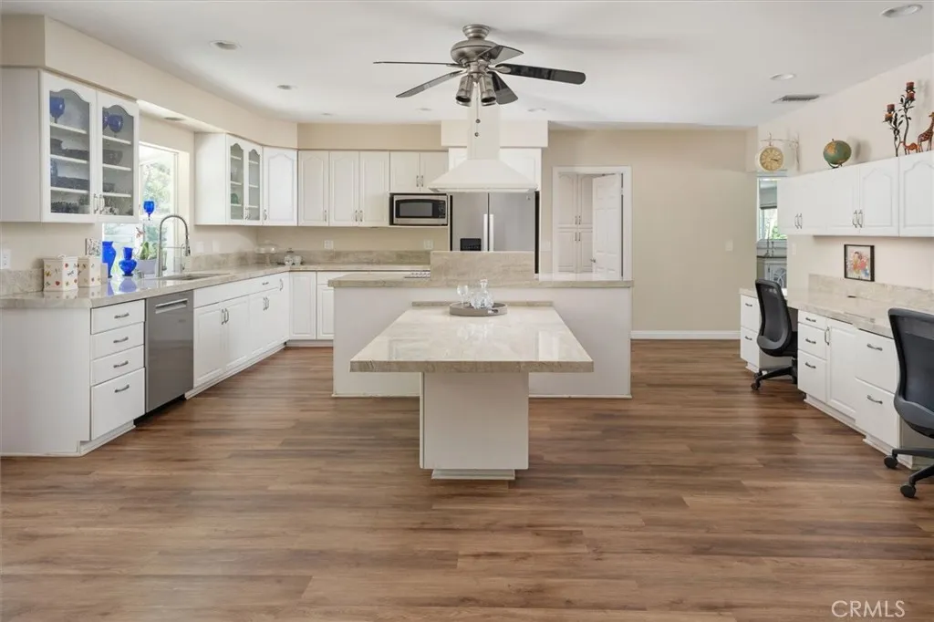 Stunning Fully Remodeled Single-Story Ranch Home on Nearly One Acre of Horse Property! Welcome to this beautifully updated mini-ranch offering the perfect blend of modern comfort and country charm. Situated on over an acre, this exceptional single-story home features 3 bedrooms and 3 bathrooms, thoughtfully designed for both everyday living and entertaining. Step inside to a spacious living and dining area filled with natural light, and newer windows throughout. The upgraded kitchen is a chefs dream, showcasing elegant Taj Mahal quartzite countertops, convenient cabinet slide-outs, and stylish finishes. The primary suite offers direct access to the backyard, creating a private retreat where you can unwind in the impressive 16-foot Cal Swim Spa or refresh in the outdoor shower. All bathrooms have been tastefully updated and include built-in heaters for added comfort. Energy efficiency is a standout feature with 32 owned solar panels producing approximately 10,000 kW. Additional upgrades include a newer AC system and instant water heater. The expansive backyard is an entertainers paradise, complete with a tranquil water feature, two pergolas, and a built-in BBQ area featuring a sink and refrigerator. Outdoor enthusiasts will appreciate the mini horse corral and abundant parking space for RVs, boats, and recreational vehicles. Enjoy a variety of fruit trees including lemon, orange, tangerine, apricot, apple, and olive. The home also includes a refrigerator, large laundry room, and an oversized garage for added convenience. This one-of-a-kind property offers space, upgrades, an