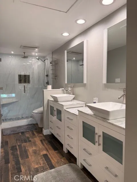 Motivated Seller !!! Stunning 2-Bedroom Townhome in Old Agoura Welcome to this beautifully upgraded and move-in ready townhome in the highly sought-after community of Old Agoura. Featuring two spacious master suites, two full bathrooms, and a convenient powder room on the main level, this home blends comfort with modern upgrades. Inside, youll find gorgeous wood-like flooring with crisp white baseboard moldings. The remodeled and expanded kitchen boasts white soft-close cabinetry, stainless steel hardware, under-cabinet lighting, Quartz countertops, a designer mosaic tile backsplash, and newer stainless steel appliances. The light-filled living room highlights a custom Carrera marble fireplace with fire glass, while upgrades throughout include dual-pane windows and sliding glass doors with treatments, recessed LED lighting, and a smart thermostat paired with a new A/C unit (installed 2019). Upstairs, enjoy vaulted ceilings and a skylight (2017) for an open, airy feel. The primary suite offers a custom office/closet with built-ins, a walk-in closet, and a luxuriously remodeled en suite bathroom featuring a bidet toilet, dual sinks with marble countertops, wood-like tile flooring, and a rain shower with elegant tile detail. The second master suite includes its own full bath, built-in closet, and a private balcony. Additional highlights include in-unit laundry, an attached 2-car garage, and access to a beautifully maintained community pool and spa. HOA covers: Water, Trash, Exterior Insurance, Landscaping, Community Pool & Spa. All this, just minutes from bike and horse trails