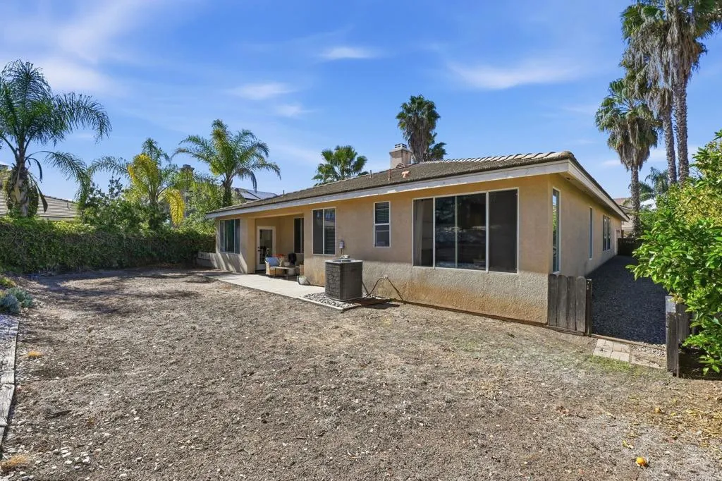 A formal entryway adorned with beautiful wainscoting welcomes you into this single-story, light-filled home, where coved archways and soaring ceilings create an elegant, airy feel. The spacious living room flows seamlessly into the formal dining area, perfect for both everyday living and entertaining. At the heart of the home, the open-concept kitchen and family room offer the ideal gathering space. The kitchen features crisp white cabinetry, quartz countertops, a large center island with bar seating, stainless steel appliances, a large basin sink, and a generous pantry. A sunny breakfast nook with backyard views adds to the charm. The adjacent family room is warm and inviting, complete with a white brick fireplace and a media niche with built-in shelving. A generously sized bonus room and nearby half bath provide flexibility and could easily be converted into an additional bedroom or private in-law suite. Secondary bedrooms are spacious and well-appointed. The expansive primary suite offers a relaxing retreat, featuring a dual-sink vanity, soaking tub, and a separate glass-enclosed shower. Additional highlights include a separate laundry room with ample storage, an attached 3-car garage, and a private backyard with a covered patio and terraced garden area, complete with mature landscaping and citrus trees. Ideally located on a quiet cul-de-sac, just minutes from local schools, shopping, dining, and with easy freeway access, this home offers the perfect blend of comfort, space, and convenience.