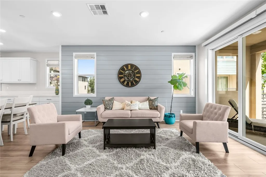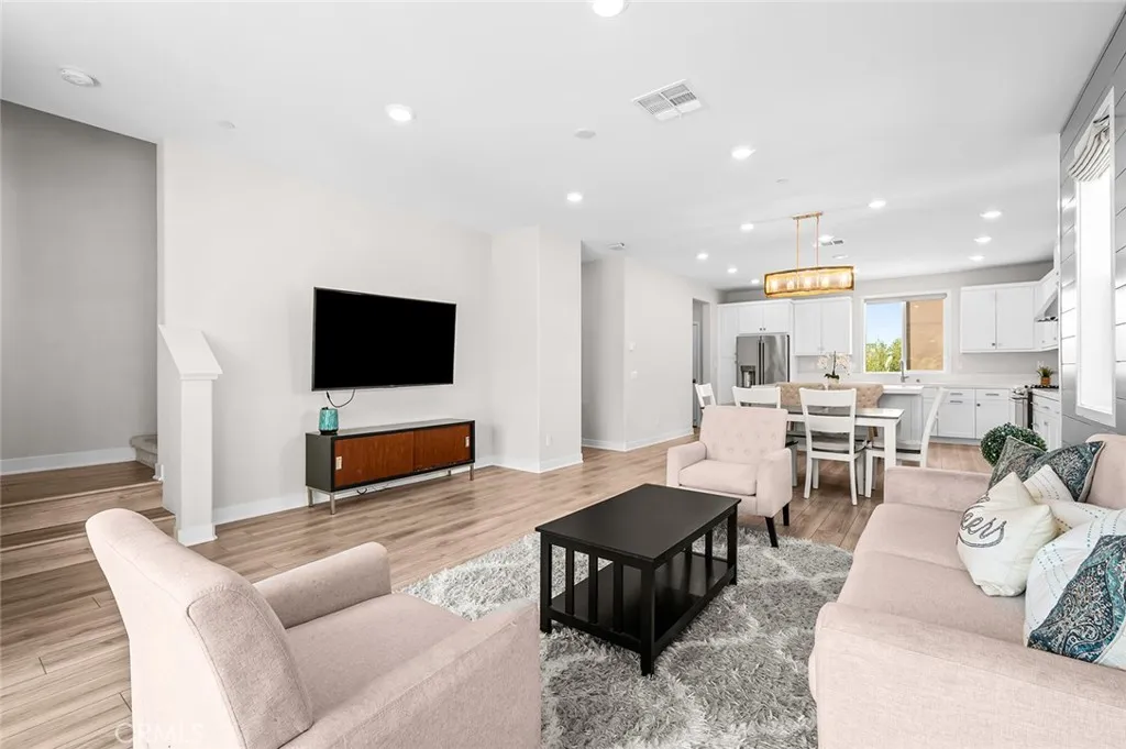 Located within the desirable Great Park community and close to the highly rated Portola High and Solia Park School (k-8th), this beautiful 4 bedrooms and 3.5 bathrooms corner unit townhome is highly upgraded and must be seen to be appreciated. Excellent natural lighting overflows the entire house with open concept Great Room, Dining Room and Kitchen. The first floor features a welcoming foyer with a spacious private bedroom and its own bathroom. The second floor showcases a beautiful kitchen with stainless steel GE Caf Appliances, Quartz countertop and a large center island. The open Great Room is attached to the balcony with expansive greenbelt and neighborhood view. Upstairs features the Primary en-suite with Walk in Closet. The two secondary bedrooms are generously sized and are thoughtfully designed away from the Primary Suite for privacy. Enjoy the resort like recreational amenities in Great Park including beautiful parks, multiple pools/ sports courts, BBQ and patio areas, playgrounds, an ice rink, a water park, walking trails and much more. Conveniently located near Woodbury Town Center and a future shopping center within the Great Park slated to open in 2027. Seller is very motivated! Bring me a reasonable offer!