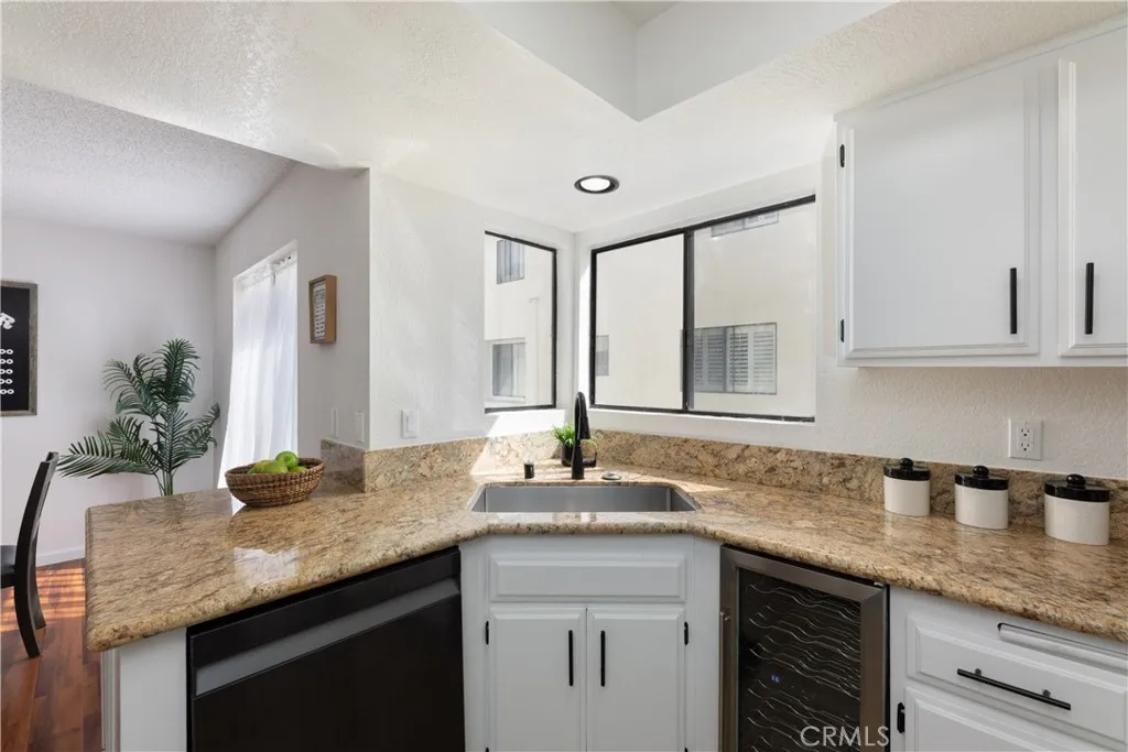 WELCOME HOME to this rare end-unit opportunity in the gated La Palma Estates community. This 3-story townhome offers 2 bedrooms, 2.5 baths, and 1,298 sq. ft., with direct street access and a well-balanced, functional layout. Fresh interior paint and thoughtful upgrades bring a crisp, modern energy throughout. The living room features a fireplace and opens to a front patio through a sliding glass door, creating an easy indoor-outdoor connection. Just a couple steps up, the dining area flows into an updated kitchen with granite countertops, stainless steel appliances, a wine fridge, and ample cabinetry. A convenient half bath completes the main level. Upstairs, both bedrooms are ensuite with vaulted ceilings and generous closet space, offering comfort and privacy. The lower level provides direct access to the oversized 2-car garage along with a spacious laundry room. Additional features include central air and heat, recessed lighting, updated bathrooms, new fixtures and hardware. Residents of La Palma Estates enjoy access to a pool, spa, clubhouse, and recreation area. Just minutes from shopping and dining, with easy access to the 405, 105, and 110 freeways, this turnkey property is move-in ready. Submit ALL Offers!