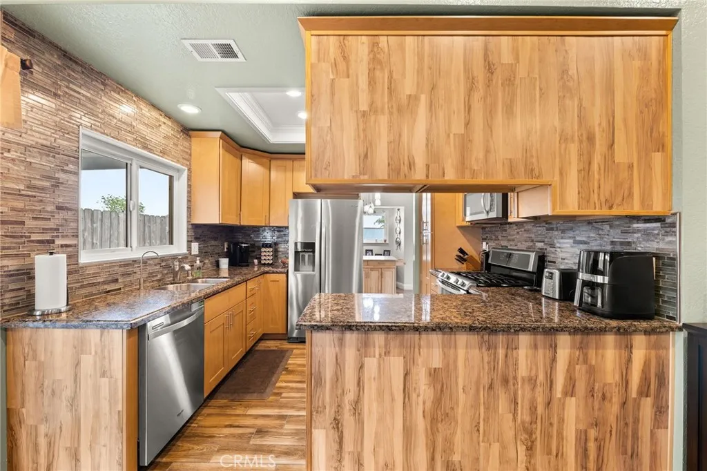 Charming single-family home in Chino offering 4 bedrooms and 2 bathrooms. The open floor plan with vaulted ceilings creates a light and airy atmosphere, making the main living spaces feel both spacious and inviting. The updated kitchen features granite countertops, ample cabinetry, and a functional layout thats perfect for everyday living and casual entertaining. Wood flooring and carpet throughout add a comfortable blend of style and practicality. Step outside to a private backyard designed for enjoyment, complete with an updated pool and spaideal for relaxing weekends or gathering with friends and family. Additional highlights include convenient RV parking, adding flexibility and extra space for your needs.